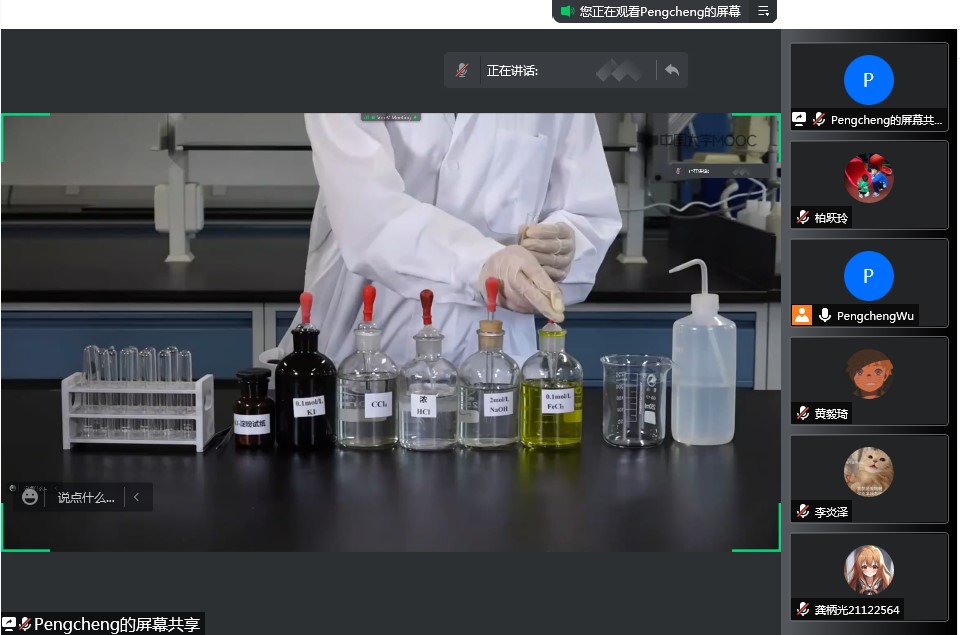 与线下的实验课相比,老师们增加了线上实验课的讲解内容——实验原理、装置、数据及处理方法、使用的软件等。网上实验课考勤严格,力求每位同学做到不缺课、不迟到,大部分课程需要学生提交预习报告。老师在讲解过程中经常对学生进行互动交流,让同学们有参与感、获得感。课后,学生要完成相关实验的现象和反应方程式、实验数据计算,网上提交作业或实验报告。平时,师生常常沟通交流,就课程内容、作业情况等进行深入讨论。
