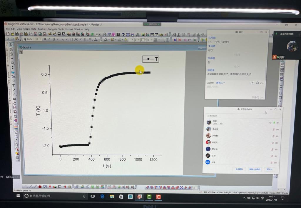 周尉老师在给同学讲解如何用origin画曲线图,以及对曲线进行积分求算