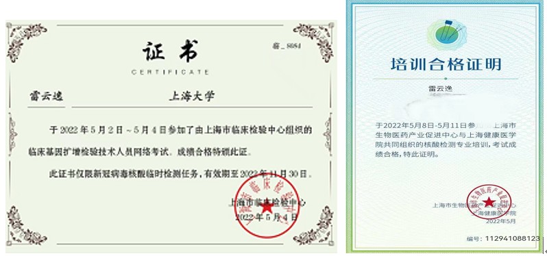 烈火炼真金,考验见本色。5月初,雷老师主动报名参加核酸检测员的培训上岗认证,考评合格并获得核酸采样上岗证,为学校常态化疫情防控助力。