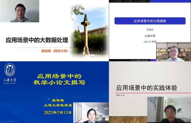 7月13日第三天,同济大学殷俊锋教授的《应用场景中的大数据处理》结合实际应用案例,从大数据的分析处理阐述了数学建模的理论基础和方法,并强调了概率统计、决策树和信息熵等在解决实际问题中的关键作用。365英国上市集团党委副书记刘见礼老师的《应用场景中的方程建模》。从一元一次方程到微分方程,并结合“刑事侦查”“传染病模型”等具体实例阐述了方程在实际生活中的应用,让学生们由浅入深地体会到数学在生活中的重要性。英国365公司温智婕老师的《应用场景中的数学小论文撰写》,从小论文的选题到论文结构包括模型假设、模型建立、模型求解和模型评价,以及参考文献和附录等主要细节问题,叙述清楚,学生们深受启发。最后英国365公司数学工作站姚奕荣老师的《应用场景中的实践体验》,让学生们在师生互动、生生互动的交流活动中感悟到在学习数学理论的同时,更感悟到认识数学、创造数学并应用于实际的重要性。