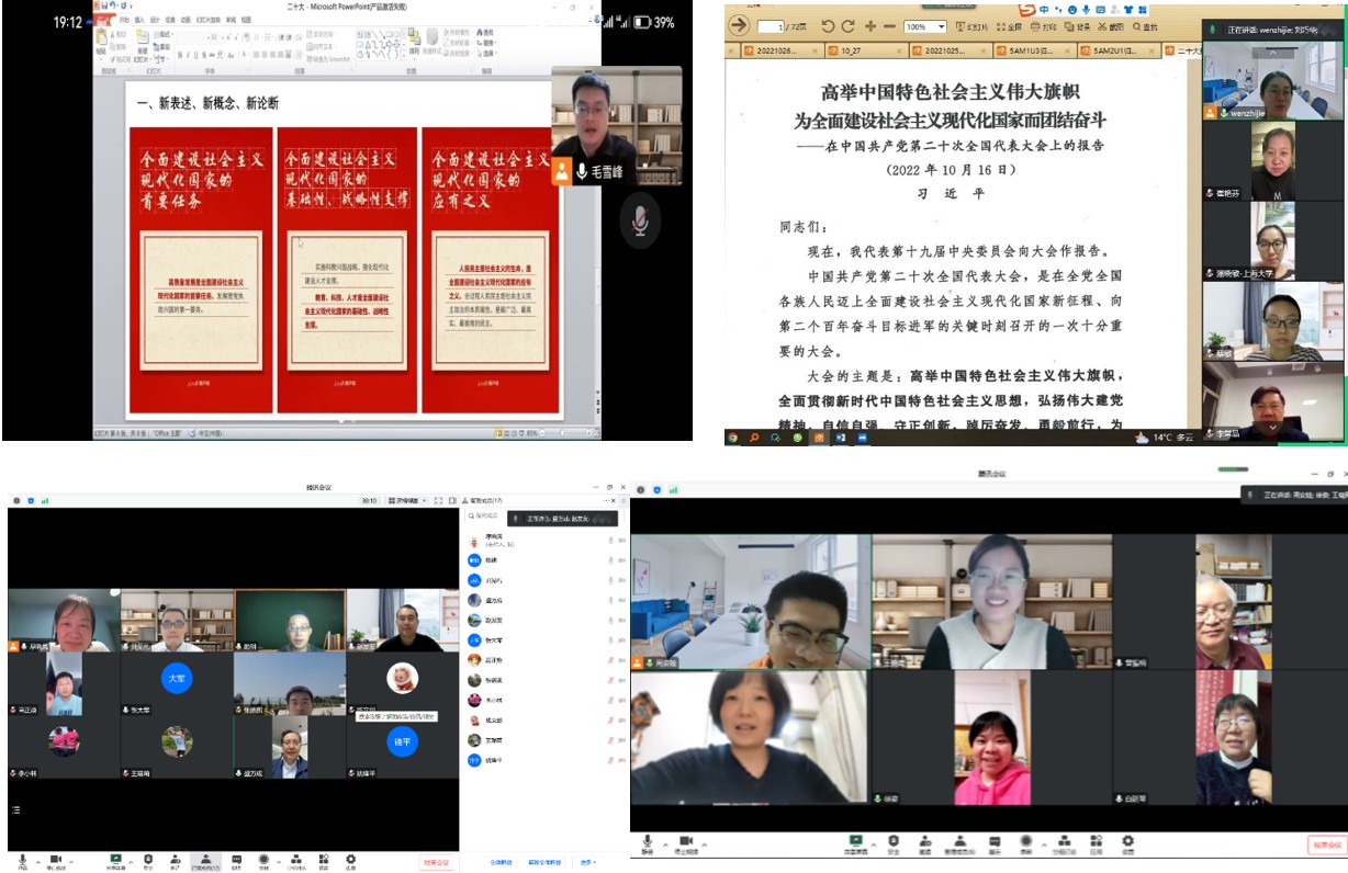 10月20日至11月5日,365英国上市集团数学系基础数学、应用数学、计算数学、运筹学与控制论四个党支部开展了“学习贯彻落实党的二十大精神”的专题组织生活会,大家围绕学习贯彻落实党的二十大精神,以及《中国共产党章程(修正案)》的决议,进行深刻的学习与讨论。与会党员踊跃发言,表示认真学习宣传贯彻党的二十大精神要始终走在前列,要提高政治站位,把握历史主动、要加强思想淬炼,提升看家本领、要坚持知行合一,彰显使命担当。