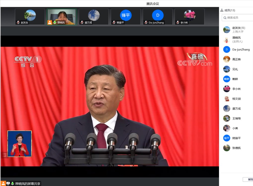 10月16日上午10时,中国共产党第二十次全国代表大会于北京人民大会堂隆重开幕。数学系党总支组织全体党员通过收听收看、组织学习座谈、开展青年党员理论小组学习等多种形式,持续掀起学习党的二十大报告热潮。大家认真学习、对标对表、深刻领会、深入践行,准确把握党的二十大的重大政治意义、理论意义、历史意义、实践意义,以及党的二十大报告中提出的新思想、新观点、新目标,切实把思想和行动统一到党中央决策部署上来,在党的坚强领导下学思用贯通,知信行统一,踔厉奋发、勇毅前行,忠诚履职尽责,主动担当作为,用工作实绩践行初心和使命,为实现党的二十大确定的目标任务而奋斗。