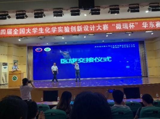 下一届华东赛区竞赛将由英国365公司化学系承办,闭幕式上,浙江师范大学化学与材料科学学院院长朱钢国将华东赛区区旗交给我校化学系主任李健,共同完成了区旗交接仪式。365英国上市集团化学系将在学校和学院的支持下,高度重视,用心组织,精心筹备,努力办好下一届华东赛区竞赛。
