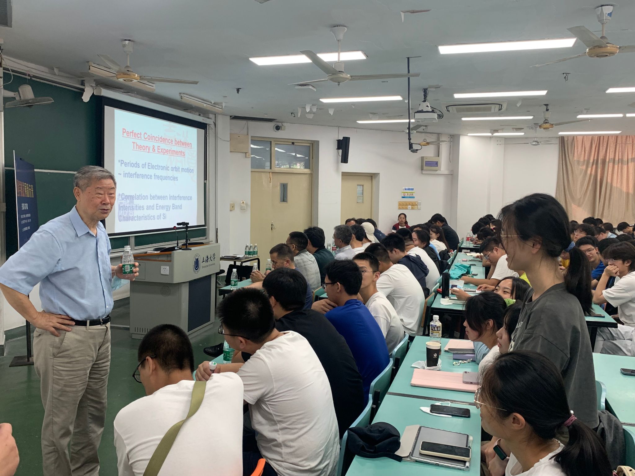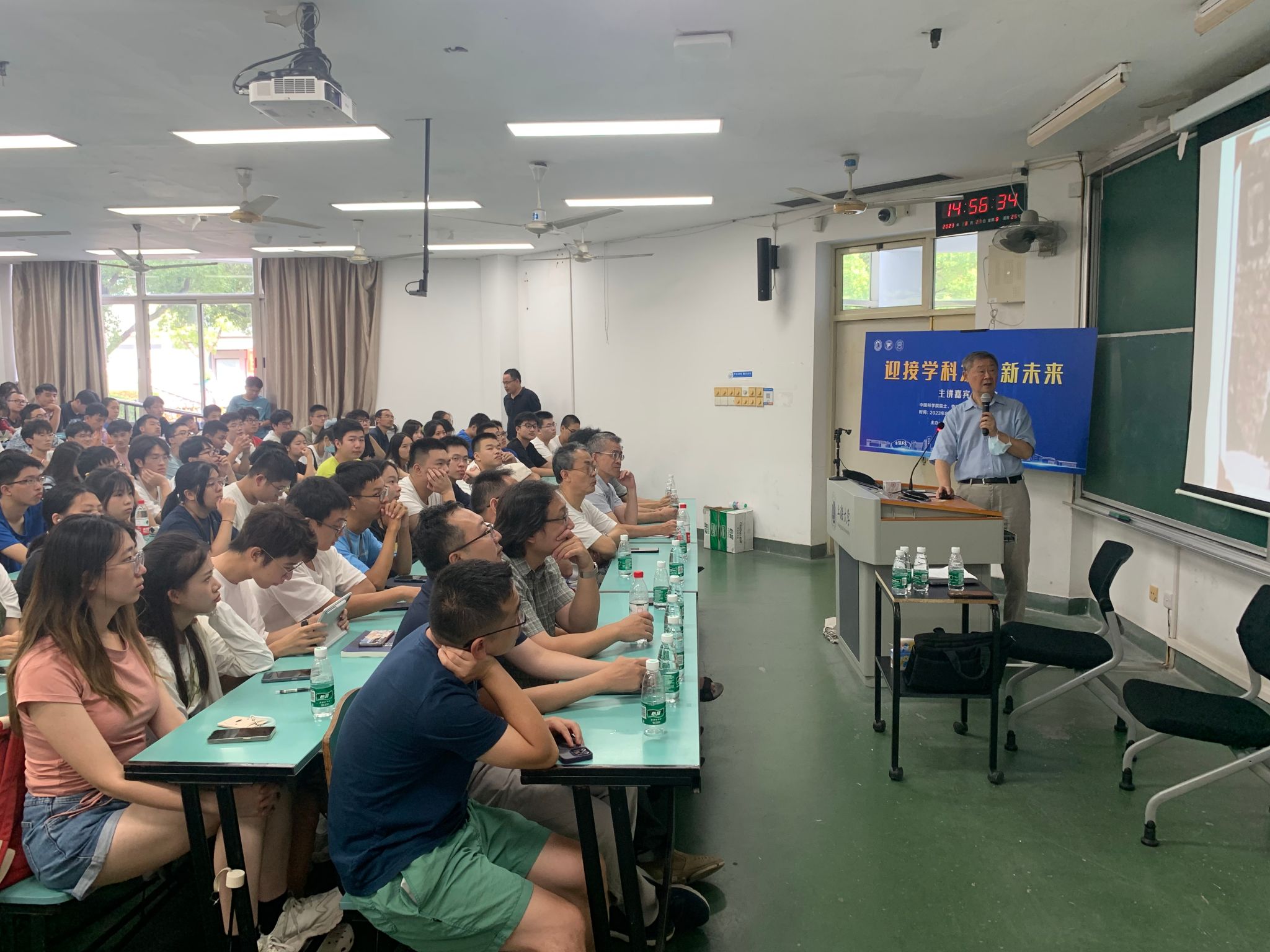 沈院士还就当前物理学的几个前沿问题,包括量子、对称、相位等,提出了一些独到的看法和见解,激励同学们努力学习,积极投身科研工作,并再次表达了对同学们的欢迎与祝福。