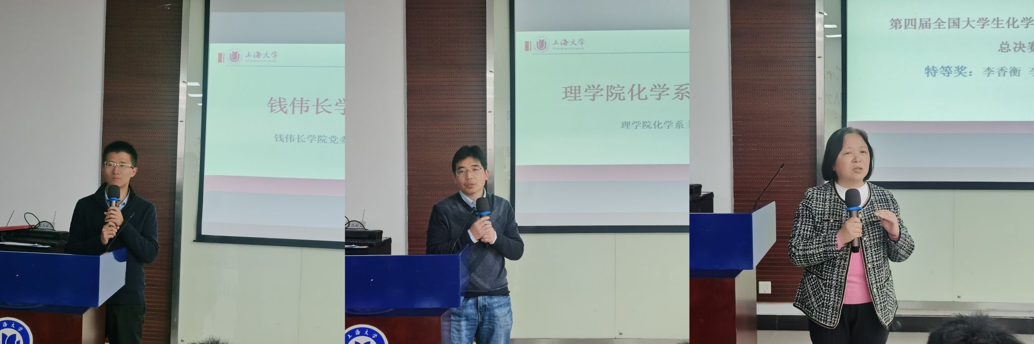 获奖学生代表先后发言,表达了对于母校和化学系的感激,感恩校友企业的帮助,表示自己将继续努力,砥砺前行。沈青松热烈祝贺获奖的同学,勉励同学们快马扬鞭、再创辉煌。化学系副主任丁益民介绍了化学系学科竞赛的情况,化学系将承办“第五届全国大学生化学实验创新设计大赛华东赛区竞赛”。