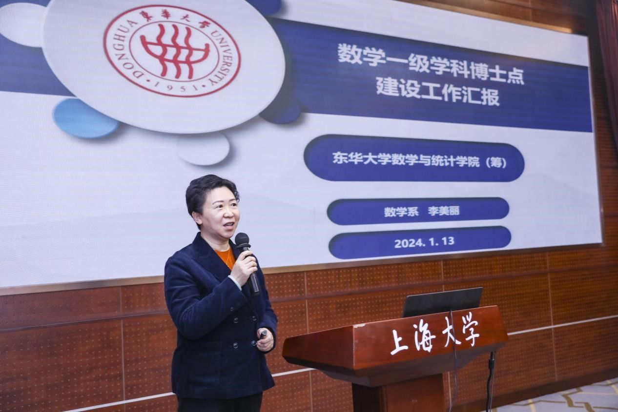 交流会上,上海财经大学数学学院院长徐定华教授介绍了上海财经大学博士点的发展现状,并对未来两年学校数学学科发展进行了规划,提出了“数学·财经·数智”的新时期建设思路与目标。东华大学数学系副主任李美丽教授围绕东华大学数学学科的发展历程和成果进行阐述,并对学科现存的师资力量不足、基础数学薄弱等问题提出了相应的策略。天津工业大学数学科学学院常务副院长李晓月教授从天津工业大学数学学科对博士研究生人才培养的特色、硬件保障、培养关键环节、培养成果方面等进行具体介绍。