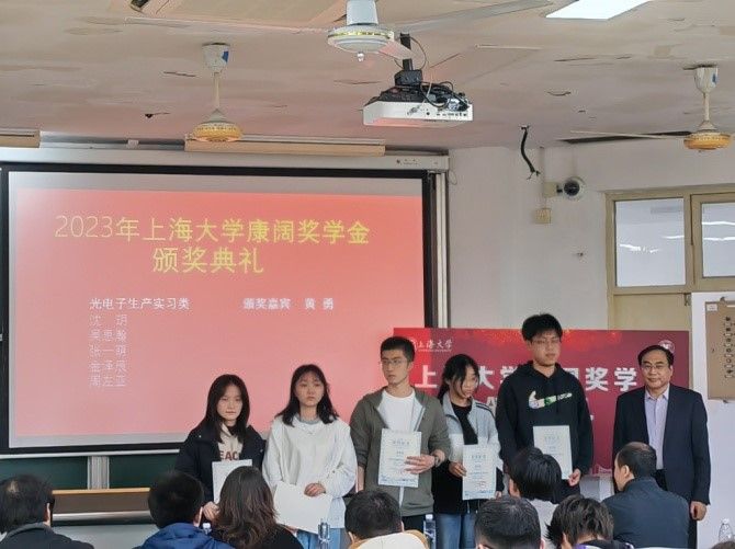 康阔奖学金由康阔光智能技术有限公司董事长、我校83级校友黄勇先生设立。该奖学金共分为三类:光电子生产实习类、科技创新与科技竞赛类、春招特色类,旨在激励学生学以致用,不断创新。