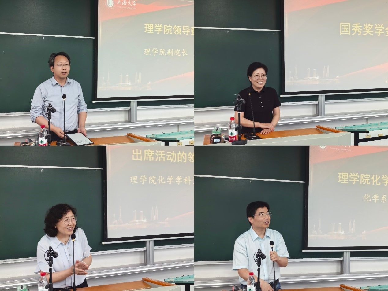 获奖学生代表李炎泽和刘昊分别分享科研成长历程,感谢校友的支持、化学系和恩师的培养,表示也要向优秀校友学习。副院长袁帅教授发表了寄语,鼓励同学们珍惜荣誉、继续努力,在未来的道路上再创佳绩、为母校争光。