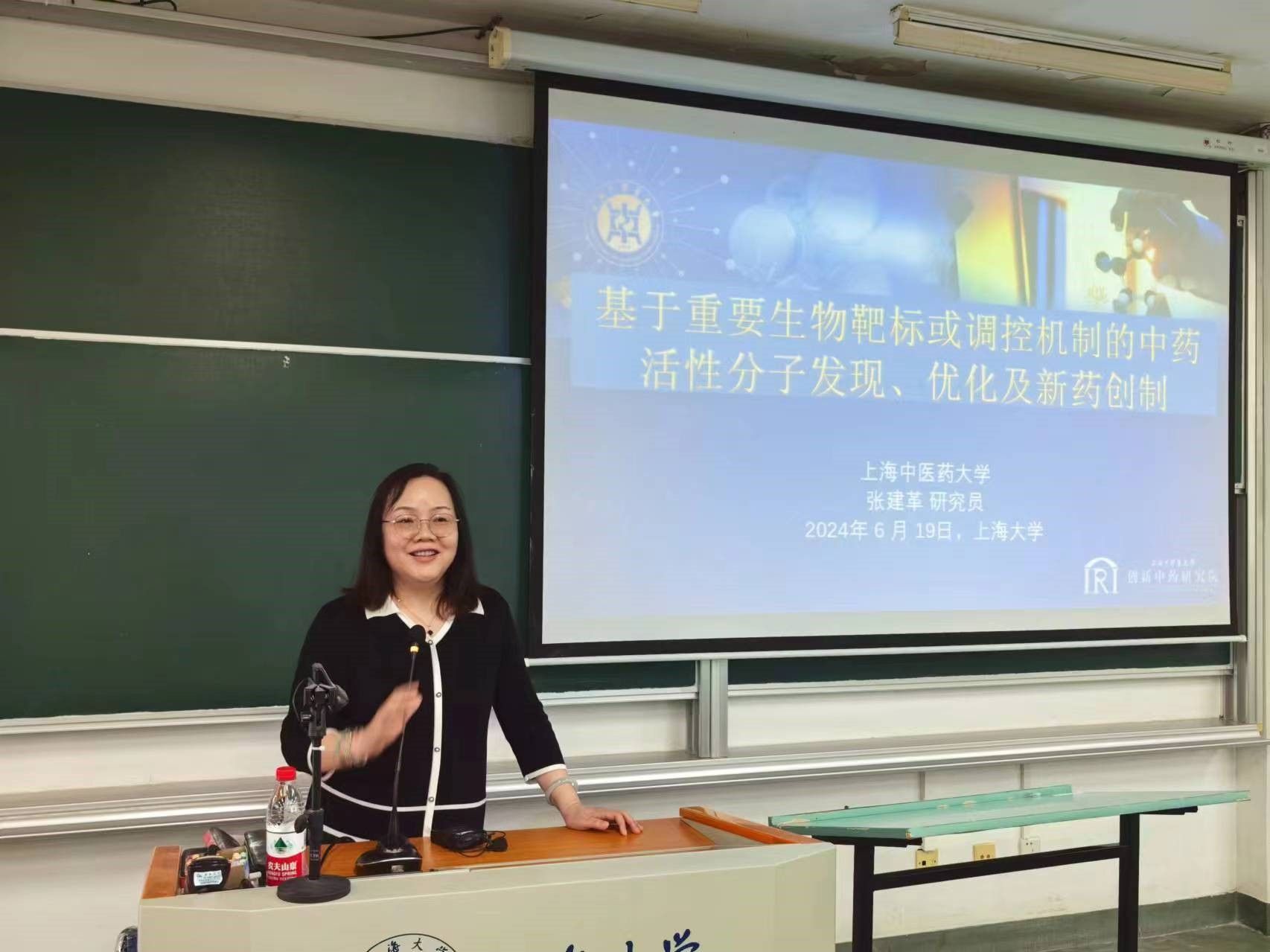 最后,上海中医药大学张建革研究员为师生们带来题为《基于重要生物靶标或调控机制的中药活性分子发现、优化及新药创制》的报告,她还与师生就相关科研问题进行了良好互动。