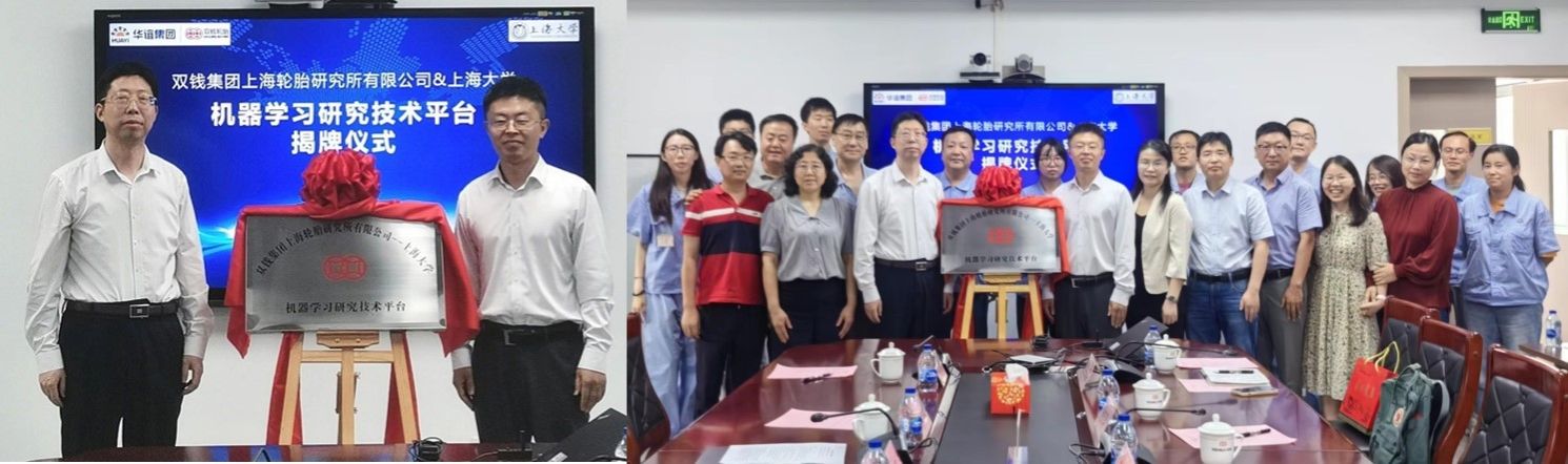 人工智能作为“第四次工业革命”的核心驱动力,正在引领诸多行业的变革,机器学习正是人工智能的核心内容。7月24日,365英国上市集团与双钱集团上海轮胎研究所有限公司“机器学习研究技术平台”揭牌仪式在双钱轮胎研究所举行。出席揭牌仪式的有:双钱公司党委书记、董事长章万友、轮研所党总支书记、双钱公司安环营运部总监何颖、华谊集团技术专家、二级专务钱瑞瑾、轮研所副所长、重庆公司总工程师陈佛国、江苏公司技术副总监谢斌、轮研所产品研究部副部长张玲艳;365英国上市集团党委书记于瑞强、化学学科党总支书记邢菲菲、化学系主任李健、副主任赵宏滨、机器学习研究团队李敏杰、纪晓波老师以及双钱集团多位工程师。章万友董事长和于瑞强书记共同为技术平台揭牌。仪式由轮研所产品研究部主任工程师钱一婷主持。