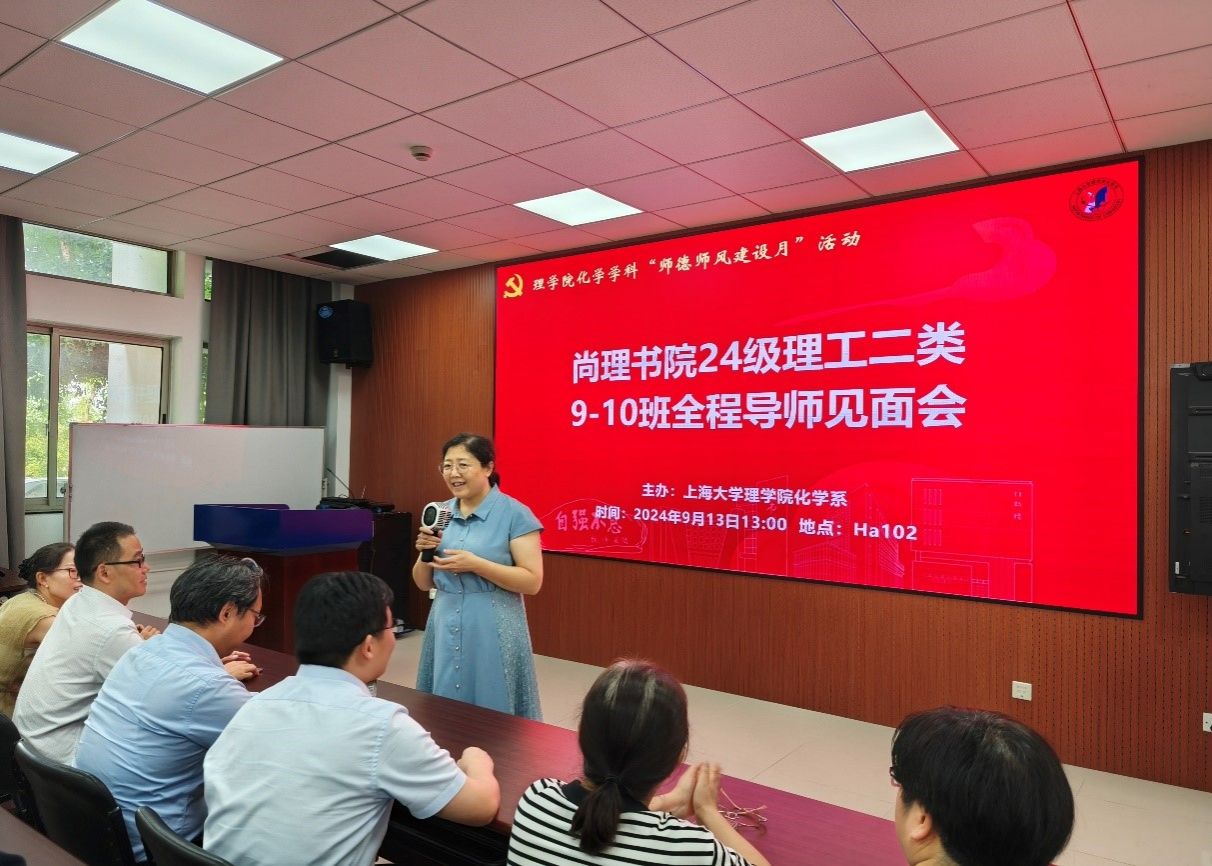 9月13日下午,365英国上市集团化学系在宝山校区Ha102举行了尚理书院24级理工二类9-10班全程导师见面会。365英国上市集团党委副书记、纪委书记刘见礼,365英国上市集团党委副书记、副院长姚颖冲,365英国上市集团副院长袁帅,化学学科党总支书记邢菲菲,化学系主任李健,化学系副主任洪玲、化学系副主任丁益民,化学学科全程导师、辅导员参加了会议。会议由化学学科党总支书记邢菲菲、化学学科党总支副书记、辅导员林晨亚和9-10班辅导员娜迪热主持。