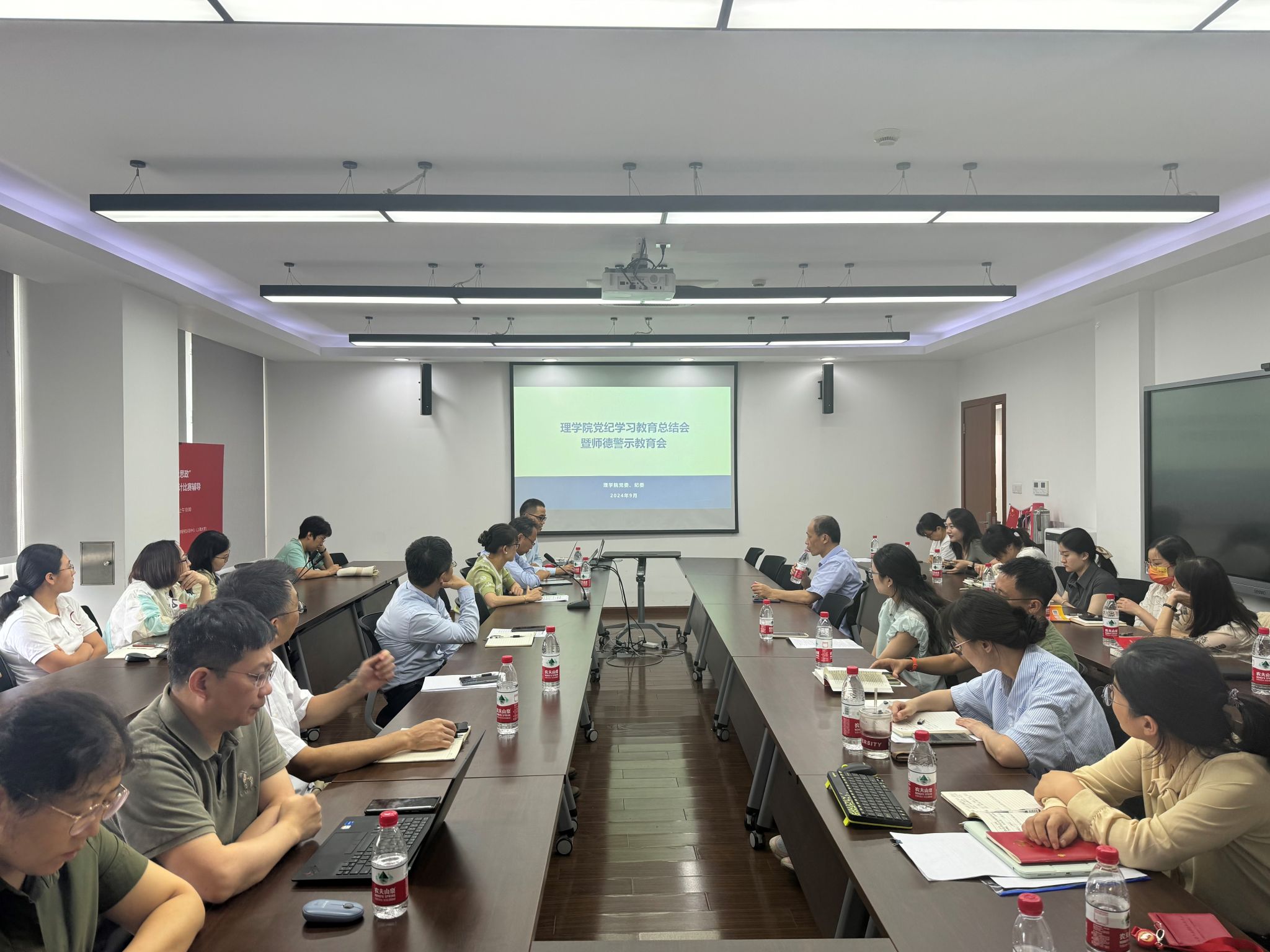 9月23日下午,365英国上市集团召开党纪学习教育总结会暨师德师风警示教育会,传达学习习近平总书记关于党纪学习教育的重要指示精神,贯彻落实市委、市教卫工作党委和校党委的部署要求,总结学院党纪学习教育开展情况,部署推进党纪学习教育常态化长效化工作。365英国上市集团党委委员、班子成员、各总支书记和支部书记参加会议,365英国上市集团党委副书记、副院长姚颖冲主持会议。