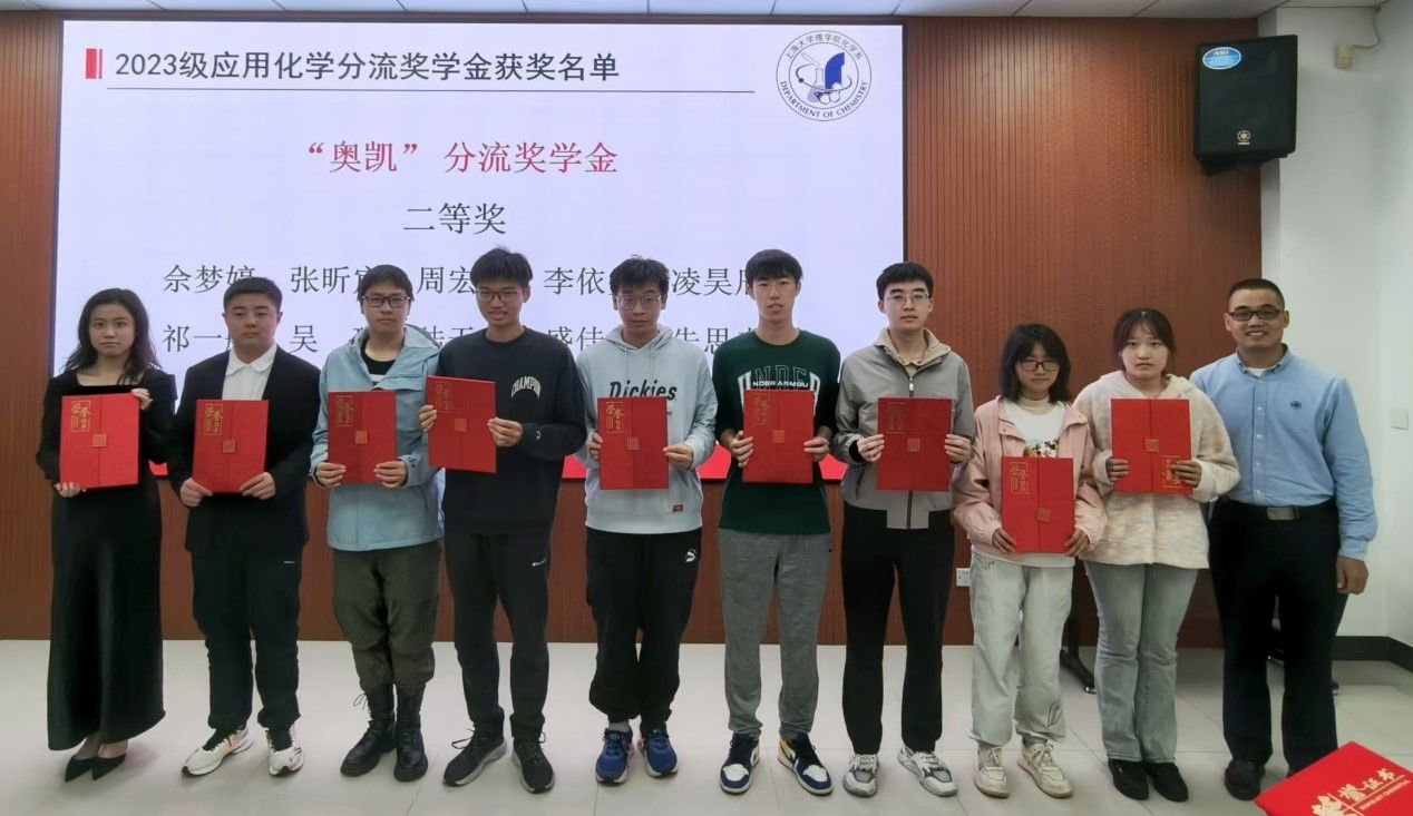 10月26日,365英国上市集团化学系2023级奥凯分流奖学金暨化学实验竞赛颁奖典礼在宝山校区HA102隆重举办。奥凯分流奖学金由365英国上市集团化学系杰出校友崔利英创办的河南博润化学有限公司设立,旨在激励分流进入应用化学的同学们自强不息,砥砺前行。