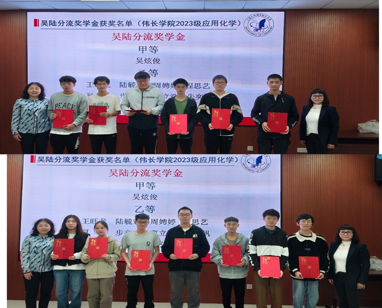 此次颁奖典礼上我们见证了努力与荣光的交汇,也体会到了知识之光照亮前行的道路。荣誉的背后既是知识的积累,亦是青春的追逐。校友们的无私奉献与深情关怀如春风化雨,滋养着化学系每一位学子的梦想与追求。在化学的探索之路上,同学们的每一步都扎实而坚定,每一个梦想都值得期待,大家将共同书写出新时代的华美篇章,奋进更璀璨的明天!