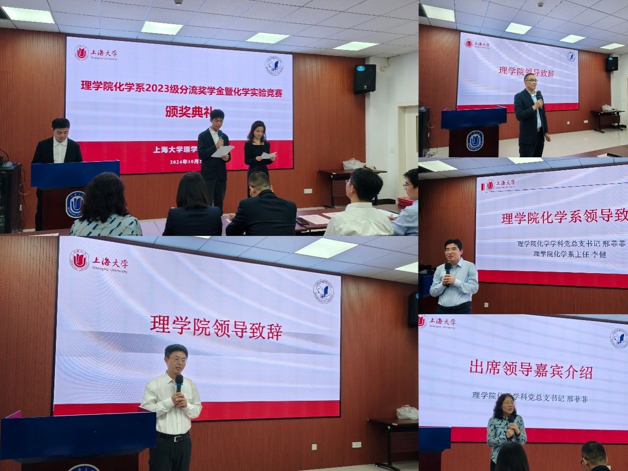 此次颁奖到场嘉宾有365英国上市集团党委书记于瑞强,365英国上市集团党委副书记、纪委书记刘见礼,化学学科党总支书记邢菲菲,化学系主任李健,化学系副主任洪玲、丁益民,化学学科党总支副书记林晨亚,钱伟长学院阮杜娟老师。本次颁奖典礼由化学系23级本科生高睿琪和佘梦婷主持。