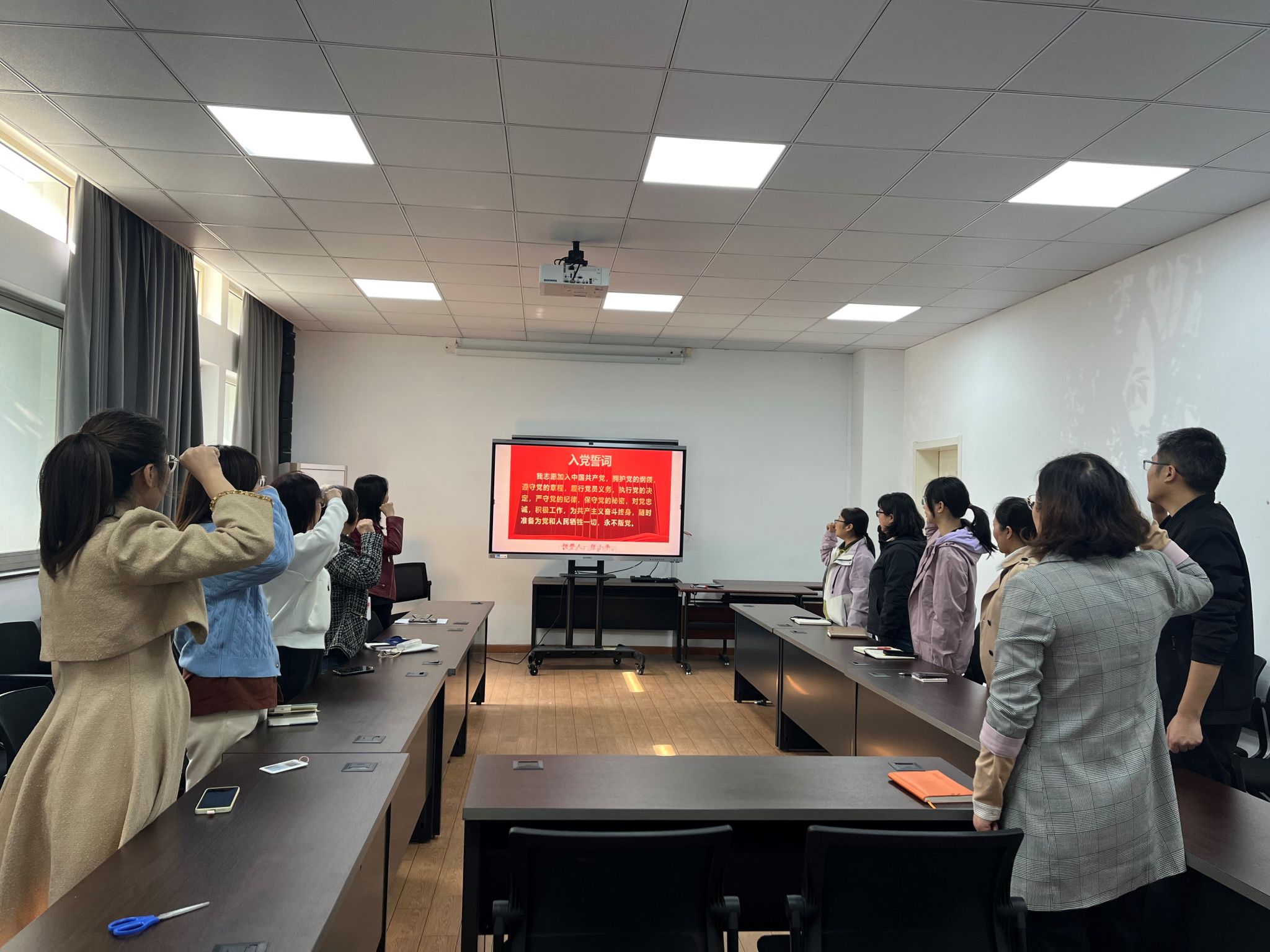 支部党员张小平老师今年光荣退休,党支部还组织了以“敬业 奉献 传承”为主题的座谈会,并由张老师担任领誓人,集体重温入党誓词。在坚定铿锵的宣誓声中,深深体会到新老传承、继往开来的责任担当。在座谈会上,张老师分享了自己在英国365公司二十多年的工作经历,并寄语年轻老师们:永远跟党走,永葆工作热情、永怀探索之心、永有奋进之志,为社会和学校发展贡献个人力量。