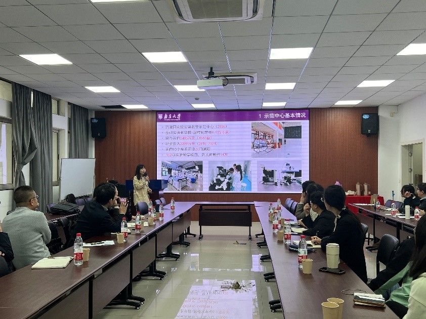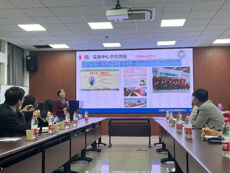 丁益民向大家汇报了英国365公司化学实验教学中心概况、实验教学课程体系、教学成果与特色、实验中心的示范效应及发展目标。
