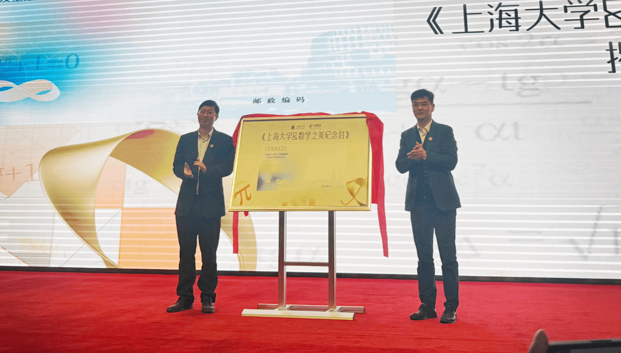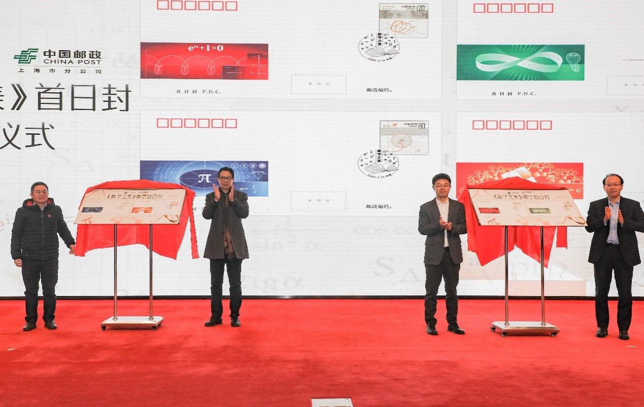 领导和嘉宾共同为《数学之美》特种邮票揭幕。
