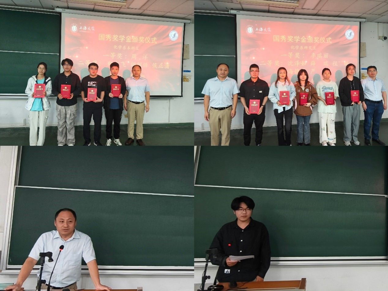 随后,颁发了国秀奖学金。上海交通大学教授朱晨致辞,他简介了国秀奖学金,该奖学金由化学系杰出校友林国强院士与夫人捐资设立,旨在鼓励化学系莘莘学子艰苦奋斗、开拓创新,勇攀科技高峰。