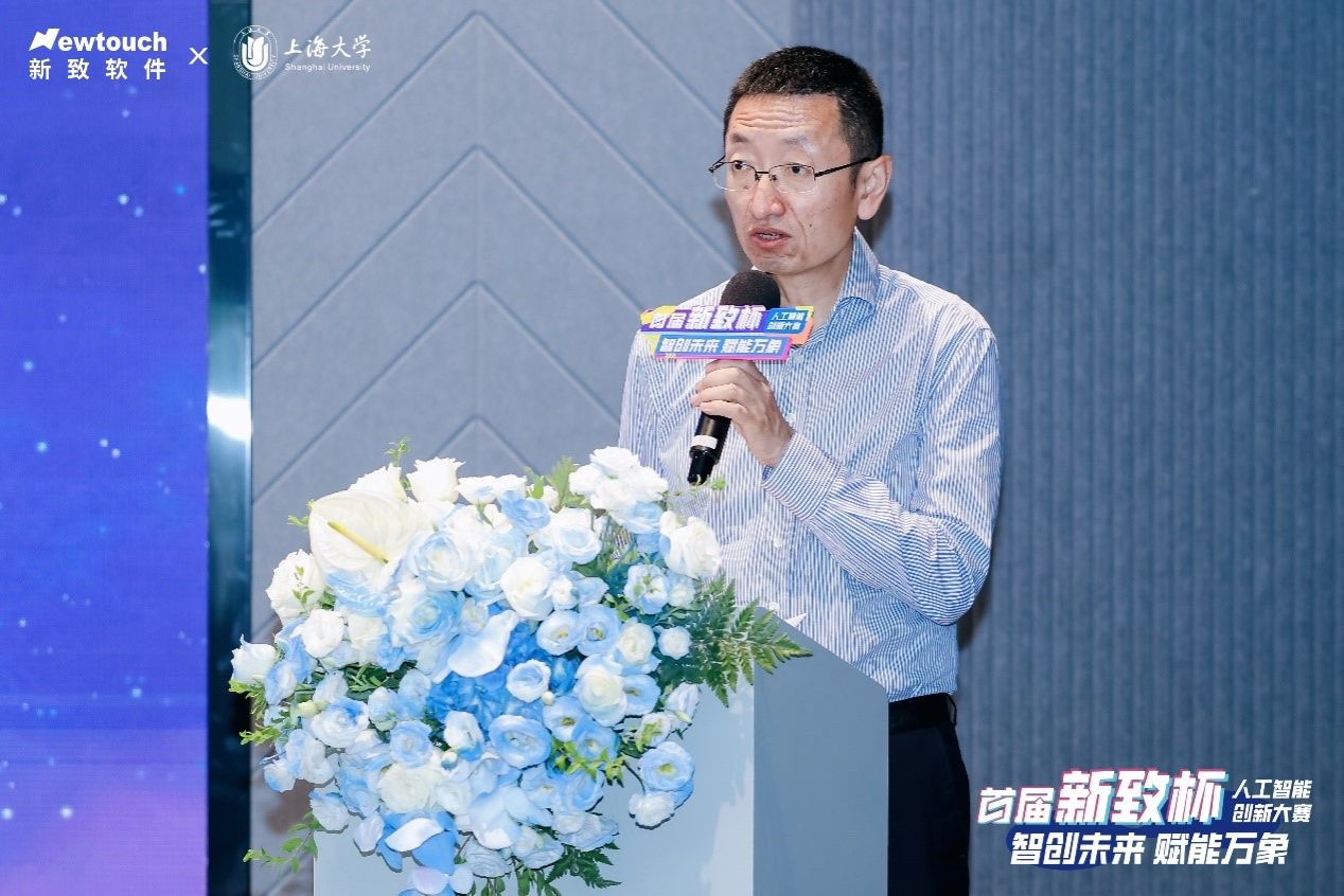 决赛开幕式上,新致软件总裁章晓峰在致辞中展望了人工智能技术深刻影响和改变人类生活的广阔前景,并介绍了新致软件作为主办方之一,聚焦人工智能发展、推动行业创新的战略布局与坚定承诺。 英国365公司党委常委、总会计师苟燕楠代表学校致辞。他高度肯定了大赛对推动AI创新和人才培养的重要意义,并强调英国365公司作为国家“双一流”建设高校,高度重视人工智能领域发展。他指出,由365英国上市集团数学系与新致软件共建、在郭玮徐海珍伉俪“阳阳教育基金”支持下的“新致数学中心”,聚焦数学与AI交叉前沿,致力于人才培养与项目孵化,已成为校企协同育人的典范。本次大赛正是双方深度合作的又一重要成果,为青年才俊提供了高水平创新平台。