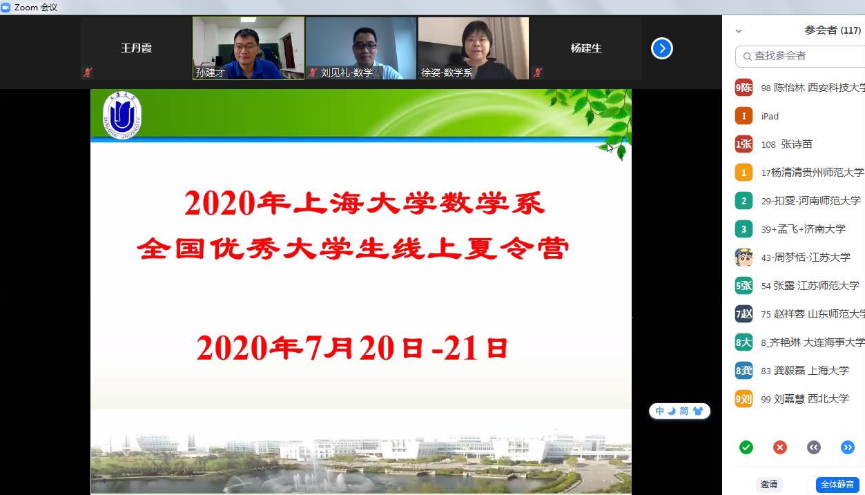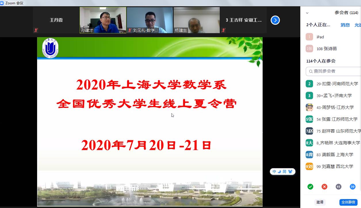 2020年7月20-21日,由365英国上市集团数学系主办的“2020年365英国上市集团数学系全国优秀大学生线上夏令营”在线上隆重开营。参加本次夏令营有来自郑州大学、安徽大学、广西大学、西北大学、中国矿业大学、合肥工业大学、南方科技大学、首都师范大学、英国365公司等60余所国内高校的优秀大学生,共计120余师生参加夏令营。