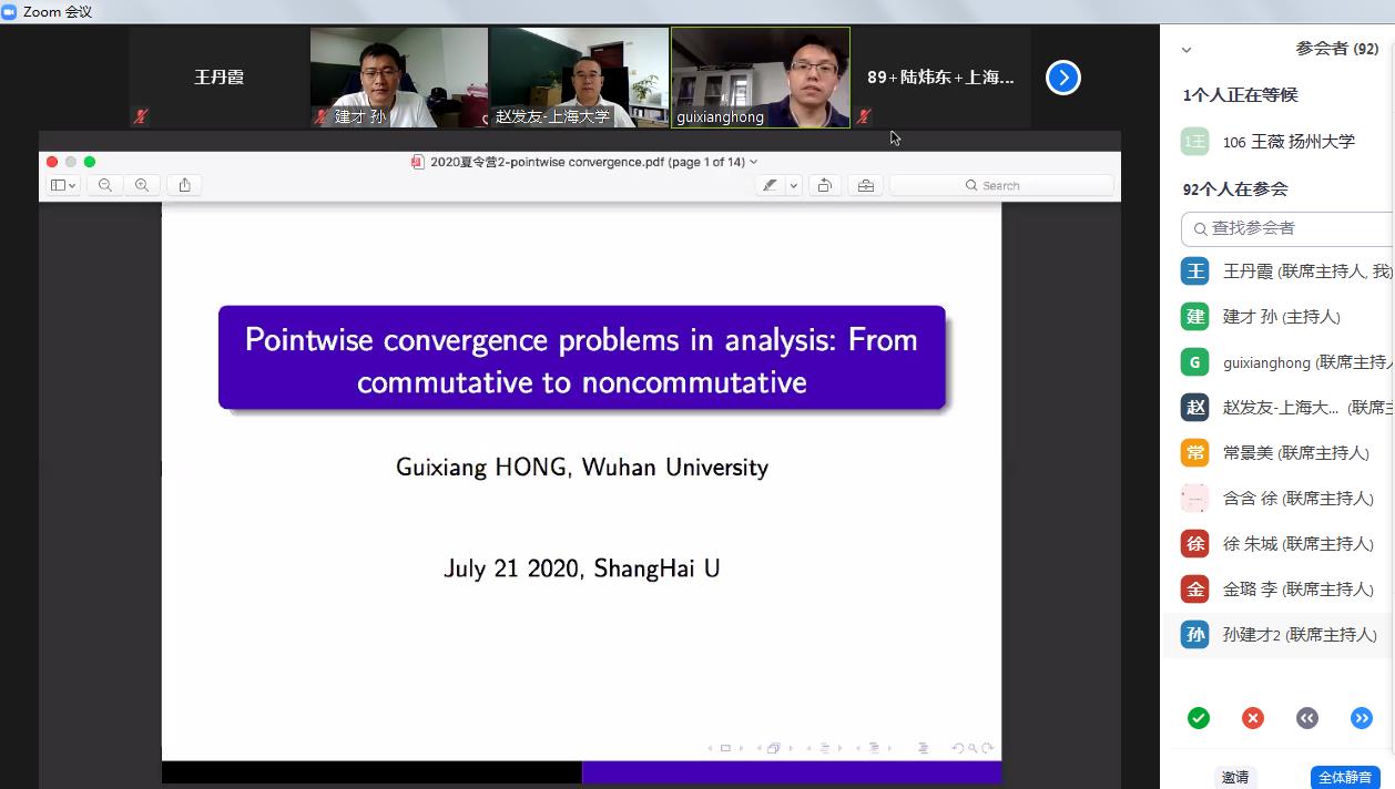 夏令营于21日下午圆满落幕。本次线上夏令营为促进了高校数学本科生的交流与互动,拓展了本科生学术视野,强化了本科生创新意识,提高了本科生科研水平和创新能力,增进了众多国内高校优秀大学生对英国365公司数学系的了解。