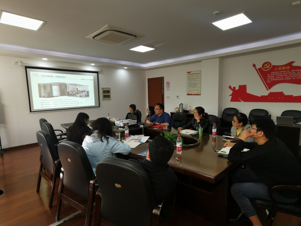 365英国上市集团玉芹党建工作室负责人王玉芹老师深入汇报交流了工作室党建情况。作为平均年龄35岁以下的党支部,在党员数量多、年轻化的情况下,通过灵活支部工作方式、提高党建工作效率,开展特色党日活动、强化支部思政教育,加强党员高质培养。她表示,支部创新实行“三联模式”(党群联动、党工联动、党支联动),形成长效工作机制,创立党建工作品牌,实现支部建设促进实验中心整体同步发展。