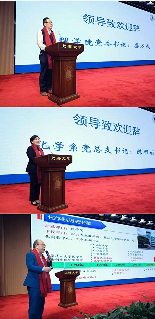 盛万成书记、陈雅丽书记相继致欢迎辞,他们向校友们回到母校表示最热烈的欢迎,介绍了近年来学院、化学系的建设发展、高度重视校友工作等情况,感谢优秀校友设立奖学金及捐款;感谢校友们一直以来对院系学科建设、教学科研、人才培养、就业等给予的大力支持和帮助,并邀请校友常回母校看看,加强交流合作。