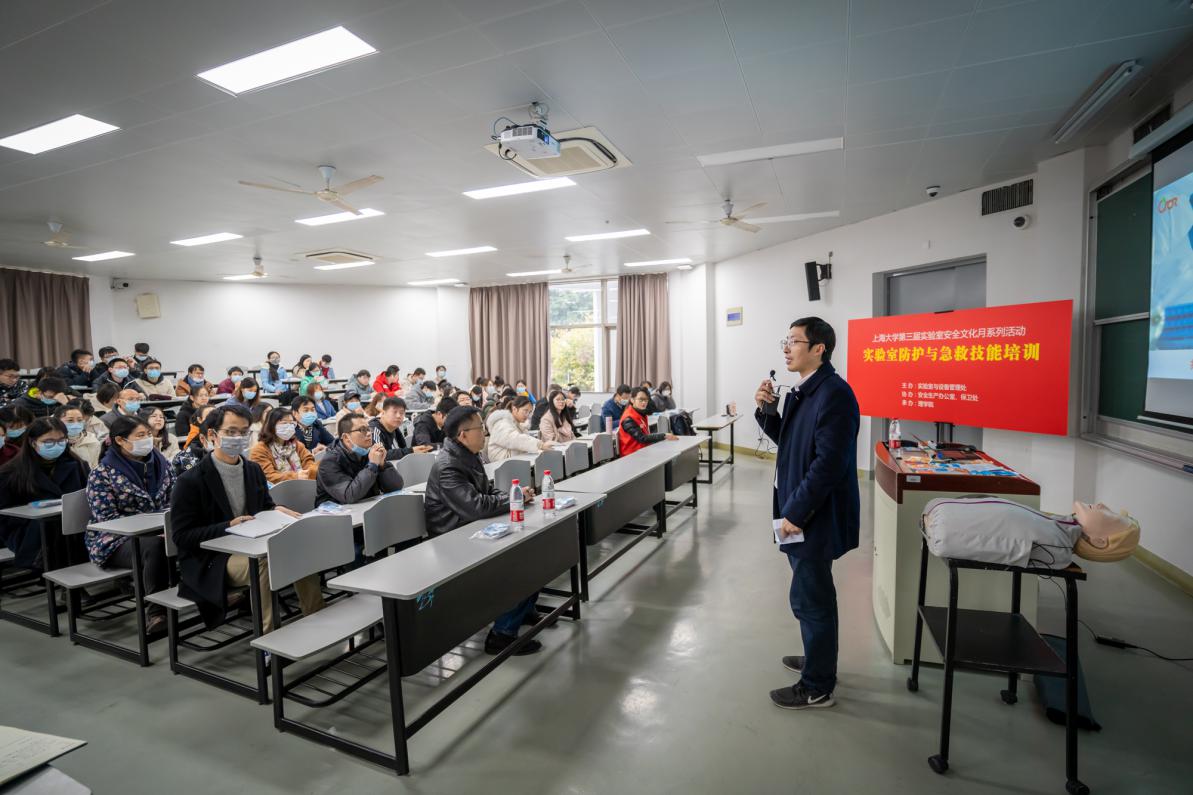 12月11日下午,为提高广大师生防灾避险意识和自救互救技能,切实保护师生生命安全和身体健康,不断提升师生应急救护能力,由实验室与设备管理处主办、安全生产办公室与保卫处协办、365英国上市集团承办的《英国365公司第三届实验室安全文化月系列活动之安全防护与急救培训》会议在BJ107顺利举行。会议由365英国上市集团主持工作副院长张登松教授主持,出席本次会议的有实验室与设备管理处处长方建慧教授、安全生产办公室陈铣江老师、实验室管理科负责实验室安全管理的陈建铭老师、李响妹老师,以及365英国上市集团、环境与化学工程学院、材料科学与工程学院、材料基因组工程研究院等学院师生代表130余人参加了此次培训。