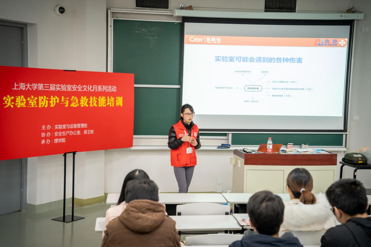 会议邀请了实验室急救箱供应商科洛公司的专职讲师刘欣华老师为大家带来实验室防护与急救技能培训。刘老师资深历广,从实验室常见意外伤害及掌握急救知识的重要性,实验室急救箱日常如何正确使用;意外伤害处理(视频讲解结合互动演练形式)和基础生命支持等几个方面娓娓道来,为我们广大师生上了一堂生动有趣且印象深刻的急救防护课程。师生员工都纷纷表示此次课程的内容设置恰到时处、培训要点简单易操作、在危机关头可以减少伤害,有效保护自己和他人,收获良多。