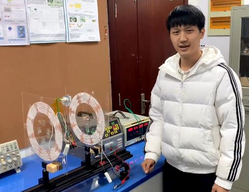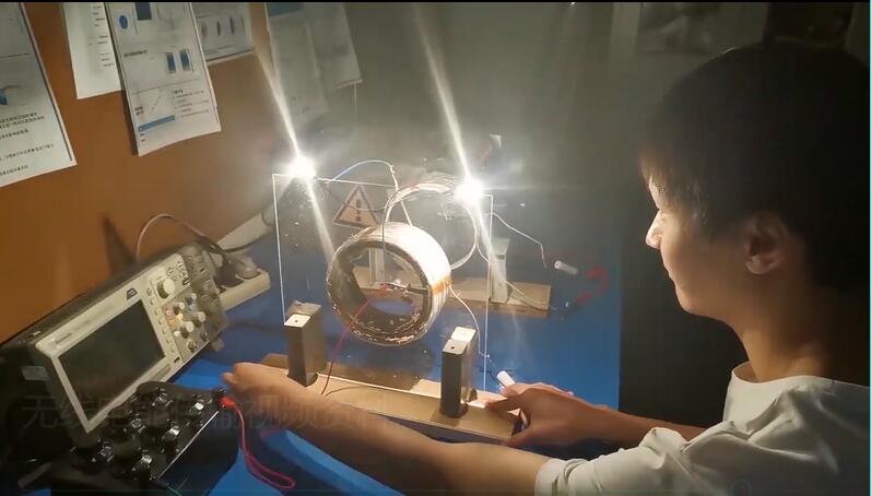 参赛学生采用无线输电隔空点亮小灯泡
