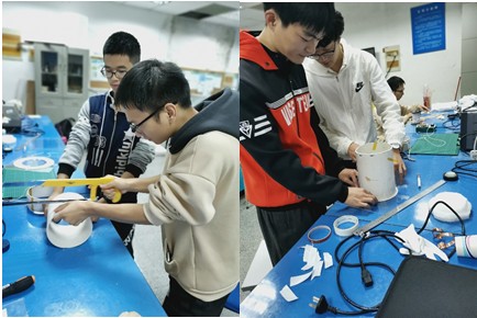 参赛学生在超导无线输电实验室进行实验装置的制作