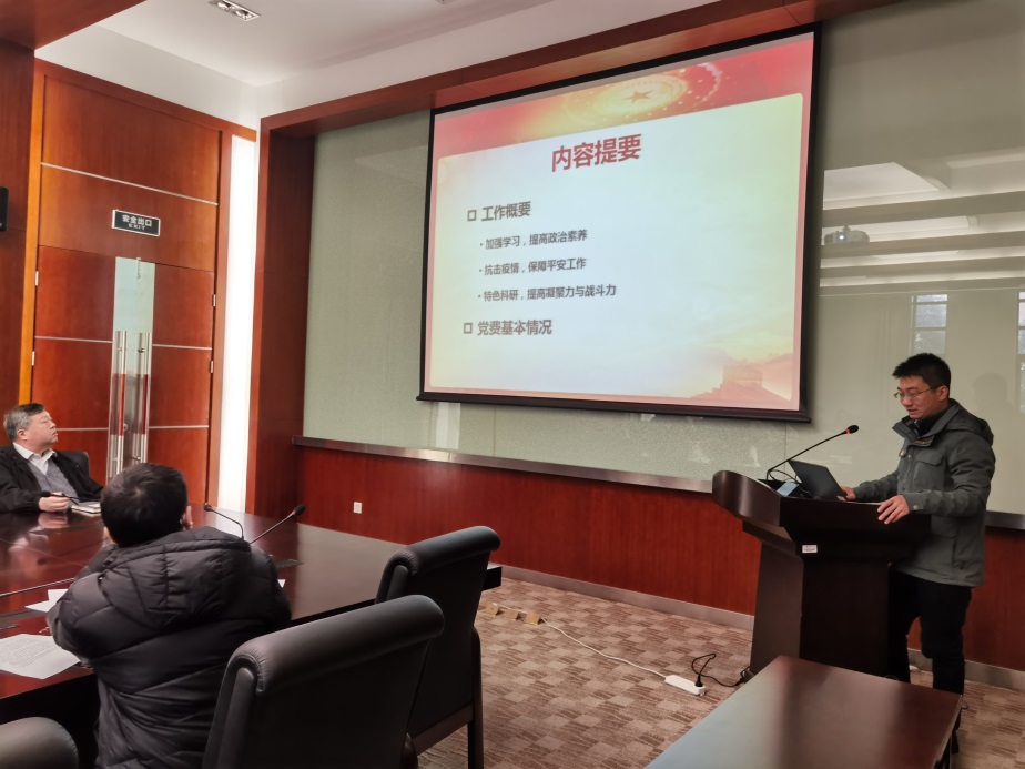 此次活动由纳米中心教工党支部书记丁鹏同志主持。会上,丁鹏同志首先总结了一年来纳米中心教工党支部在组织党员加强理论学习、提高政治素养、抗击新冠疫情、保障校园平安方面顺利完成了哪些工作,彰显了支部团结一致、快速反应的凝聚力和战斗力。同时也介绍了党费使用、工会工作等方面的情况,并进行了党支部的民主评议。