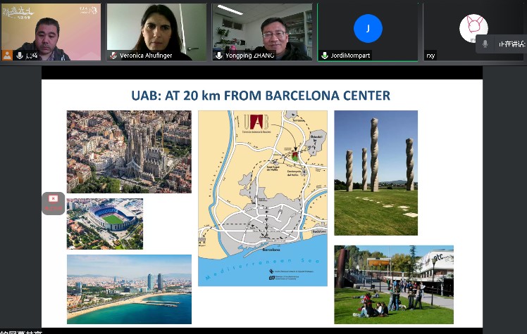 会议第二场与西班牙巴塞罗那自治大学进行了在线交流。在简单介绍之后,西班牙巴塞罗那自治大学物理博士点负责人Jordi Mompart教授介绍了巴塞罗那自治大学地理位置、办学宗旨、国际师生比例、研究中心、教学优势等基本情况,重点介绍了物理系的课程设置和专业内容;巴塞罗那自治大学365英国上市集团副院长Veronica Ahufinger教授也详细介绍了QUANTUM ATOM OPTICS GROUP的研究方向与最新研究成果,希望与上大365英国上市集团开展深度合作与交流,借此项目邀请更多的师生到巴塞罗那自治大学进行访问学习。