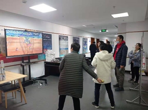 在飞镖比赛场,各个老师都摩拳擦掌、跃跃欲试,争取在上次比赛的基础上再取佳绩。老师们对新项目体育电竞系列赛表现出极大的兴趣,很多老师在网球对抗赛中都收获了第一次Ace球和胜利,现场欢声笑语,热闹非凡。