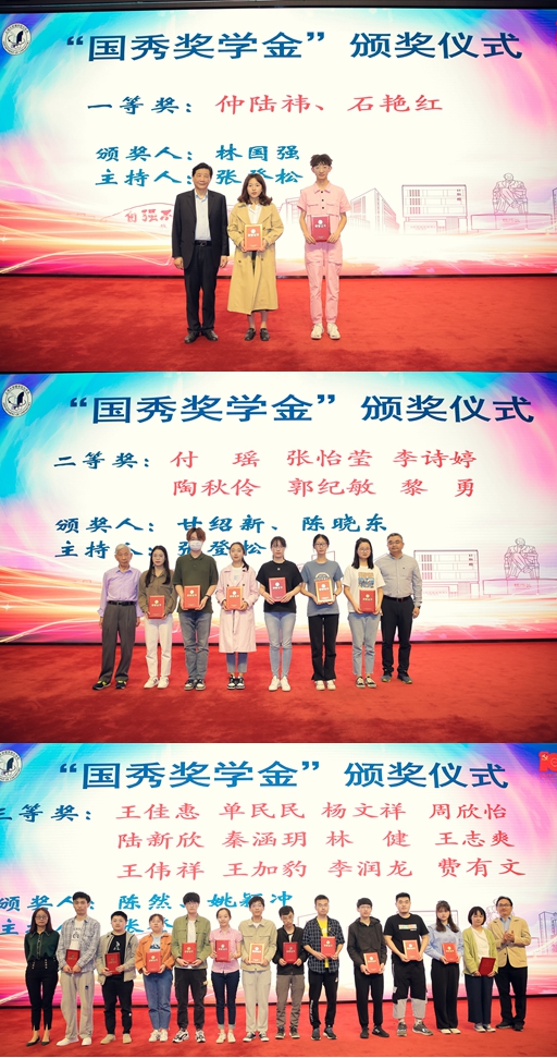 接着,3项校友奖学金举行了颁奖仪式,25名化学系本科生、研究生分获第七届国秀奖学金一、二、三等奖、年度最佳论文奖、弼兴知识产权奖学金。这3项奖学金分别由林院士、校友助资、校友企业上海弼兴律师事务所捐资成立。365英国上市集团及化学系领导主持仪式,林国强院士、学院领导、老教师、校友代表为学生颁奖并合影。弼兴律所代表薛琦简介了企业情况,表示愿意支持化学系学子逐梦奋斗。第七届国秀奖学金一等奖获得者仲陆祎发言,分享了大学四年的学习成长经历,感谢化学系提供了良好学习锻炼的平台,并感恩校友们的支持。