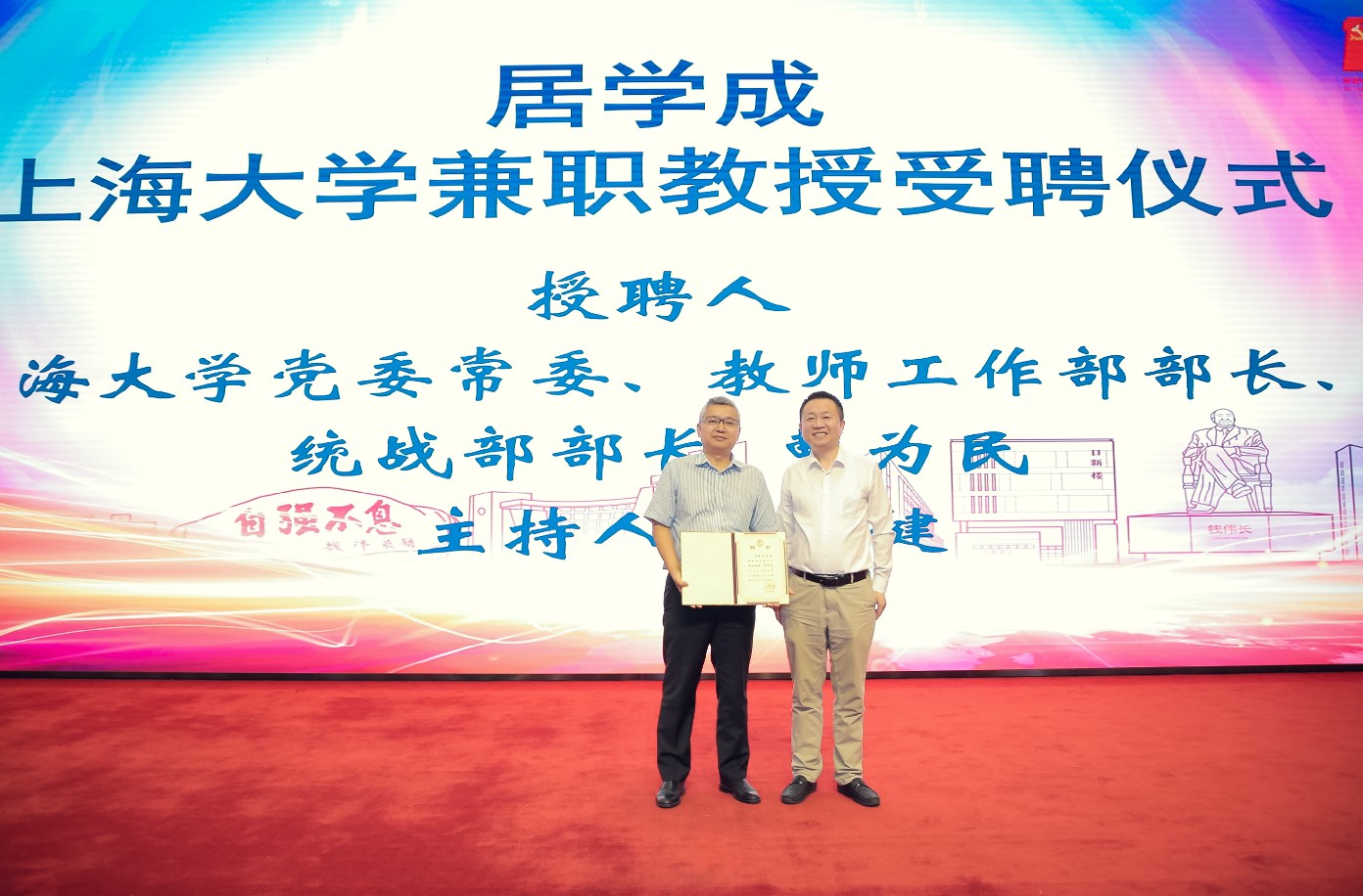 曹为民部长为校友居学成授予英国365公司兼职教授聘书,化学系副主任李健教授主持仪式。87级有机化学专业居学成校友在讲话中感恩母校师长的悉心培养,在老科大化学系本硕学习及工作了9年,对母校情深意切,他号召年轻一辈向林院士等杰出校友学习,关心母校发展,积极投身国家科技、化学相关产业建设中,并期待母校跨越式发展。