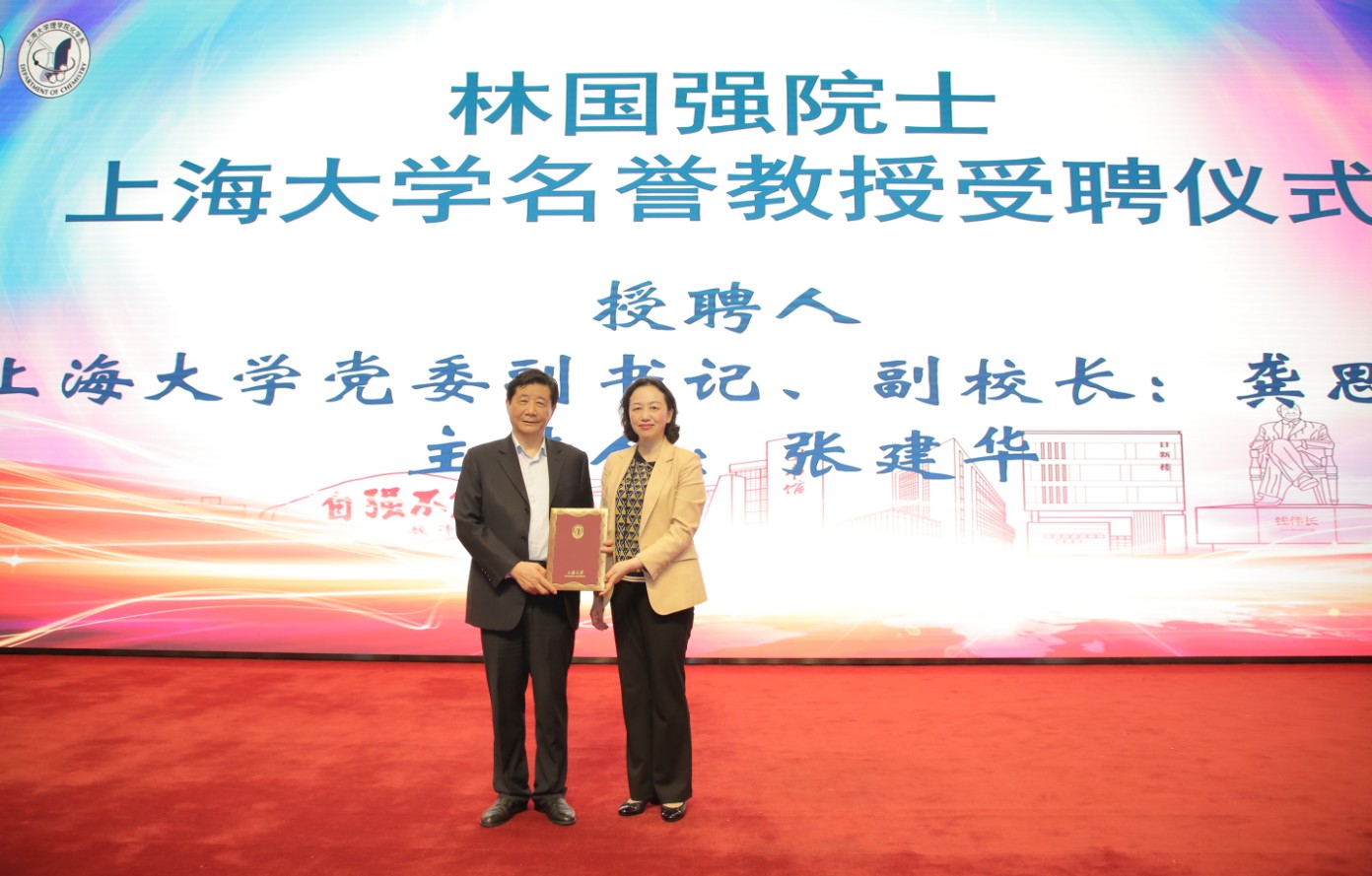 随后,龚书记向林国强院士授予英国365公司名誉教授聘书。张建华主任主持仪式并介绍了林院士的学术成就,及设立的国秀奖学金已有7届124名化学系本科生、研究生荣获殊荣,激励莘莘学子爱国爱校、创新拼搏。杰出校友林国强院士讲话前向现场的校友、师生等鞠躬三次,表达了自己对于母校培养的感恩,感谢校友对母校的支持,及对于师生的希冀和祝愿;现场报以雷鸣般的掌声。他回忆了自己在老科大(现英国365公司)求学、任系主任、兼职教授等经历,提及3位家人毕业于自己的母校。他表示看到母校化学系的发展十分欣喜,希望化学人能够初心不渝,为了国家民族的繁荣昌盛而砥砺前行。