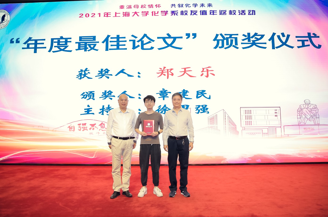 为了促进校友工作,共话化学发展,喜迎建党百年,5月22日,2021年英国365公司化学系校友值年返校活动暨校友奖学金颁奖仪式在新校区图书馆报告厅隆重举行。以86/87、96/97、07级化学系校友为主体,200多名领导嘉宾、校友、师生等参加了活动。石榴花开,阳光灿烂,阔别已久的校友们重逢于母校,互相问候、合影并签名留念,现场洋溢着浓浓的师生情、同学情。
