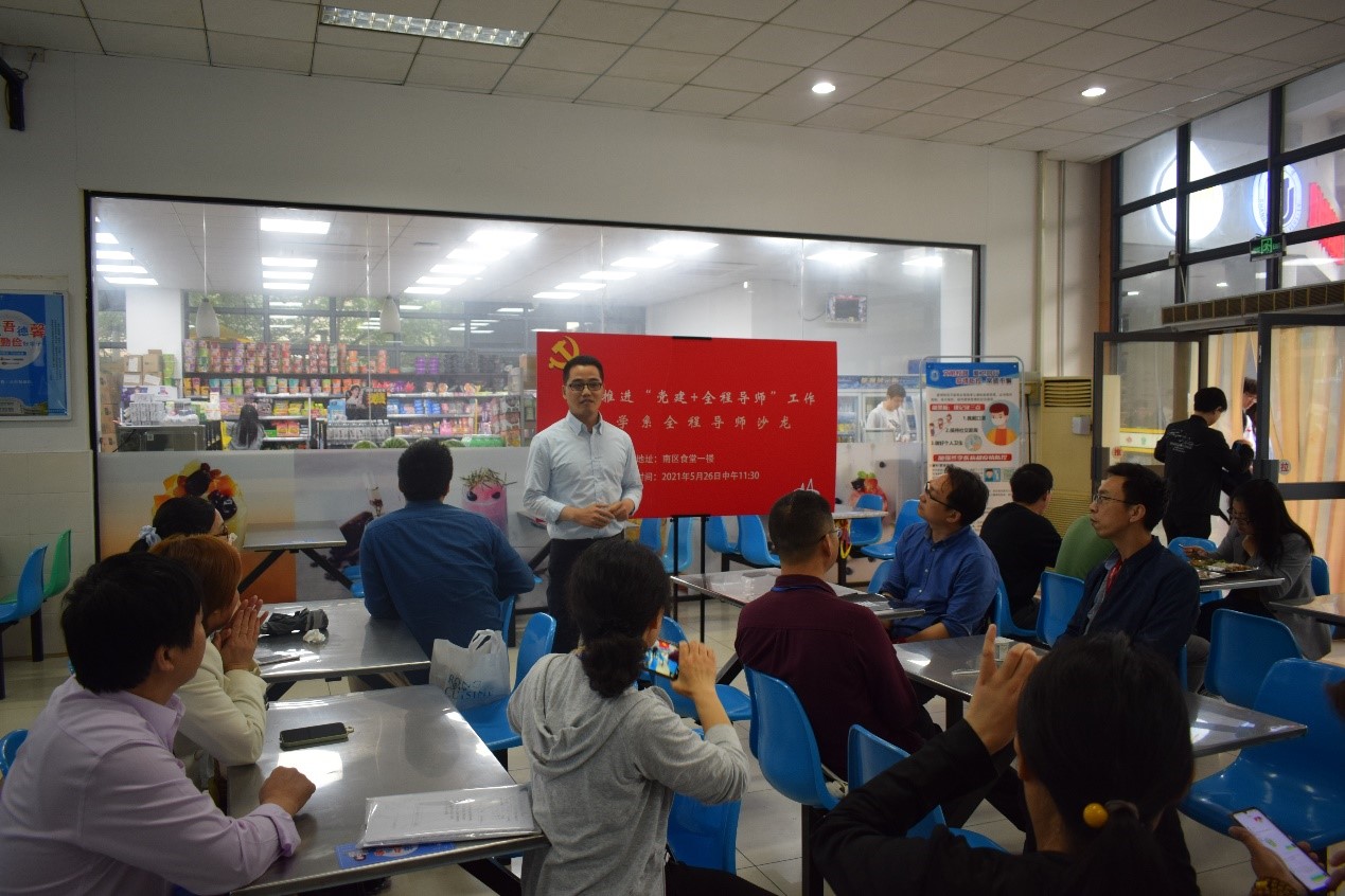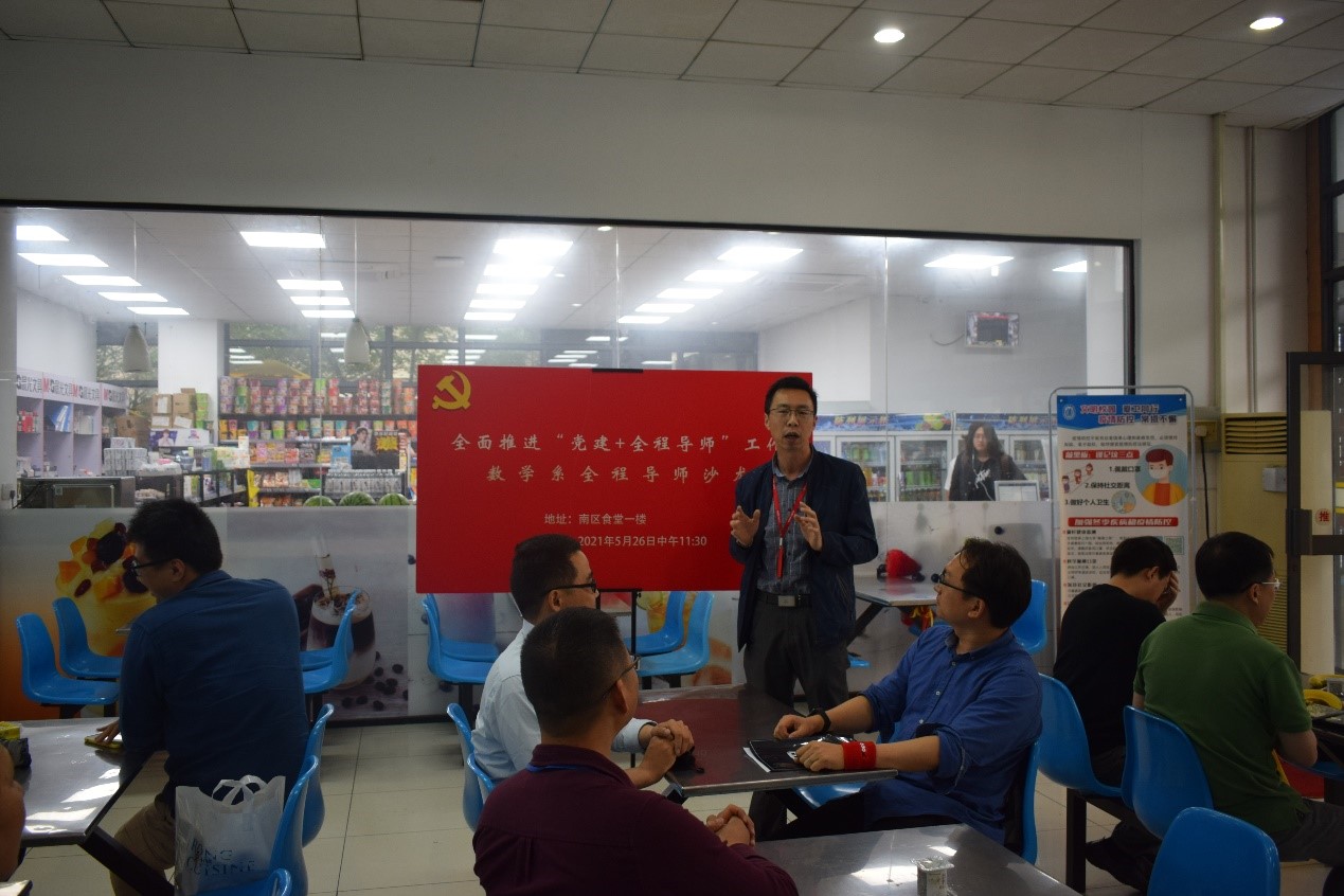 2021年5月26日,为落实校党委、365英国上市集团党委提出党史学习教育“办实事、开新局”的工作要求,365英国上市集团数学系党总支在南区食堂一楼承办了365英国上市集团党委“党建+社区”全程导师沙龙,共同探讨推进“全程导师制”、“导师楼宇工作制”、“理想青年成长空间”等各项服务的施行情况和未来规划。365英国上市集团党委副书记、纪委书记陈然、数学系党总支书记刘见礼、数学系副主任孙建才、公寓办副主任吕宝川与毛雪峰工作室成员、数学系教工支部书记、数学系全程导师代表们参加活动,刘见礼主持本次沙龙。
