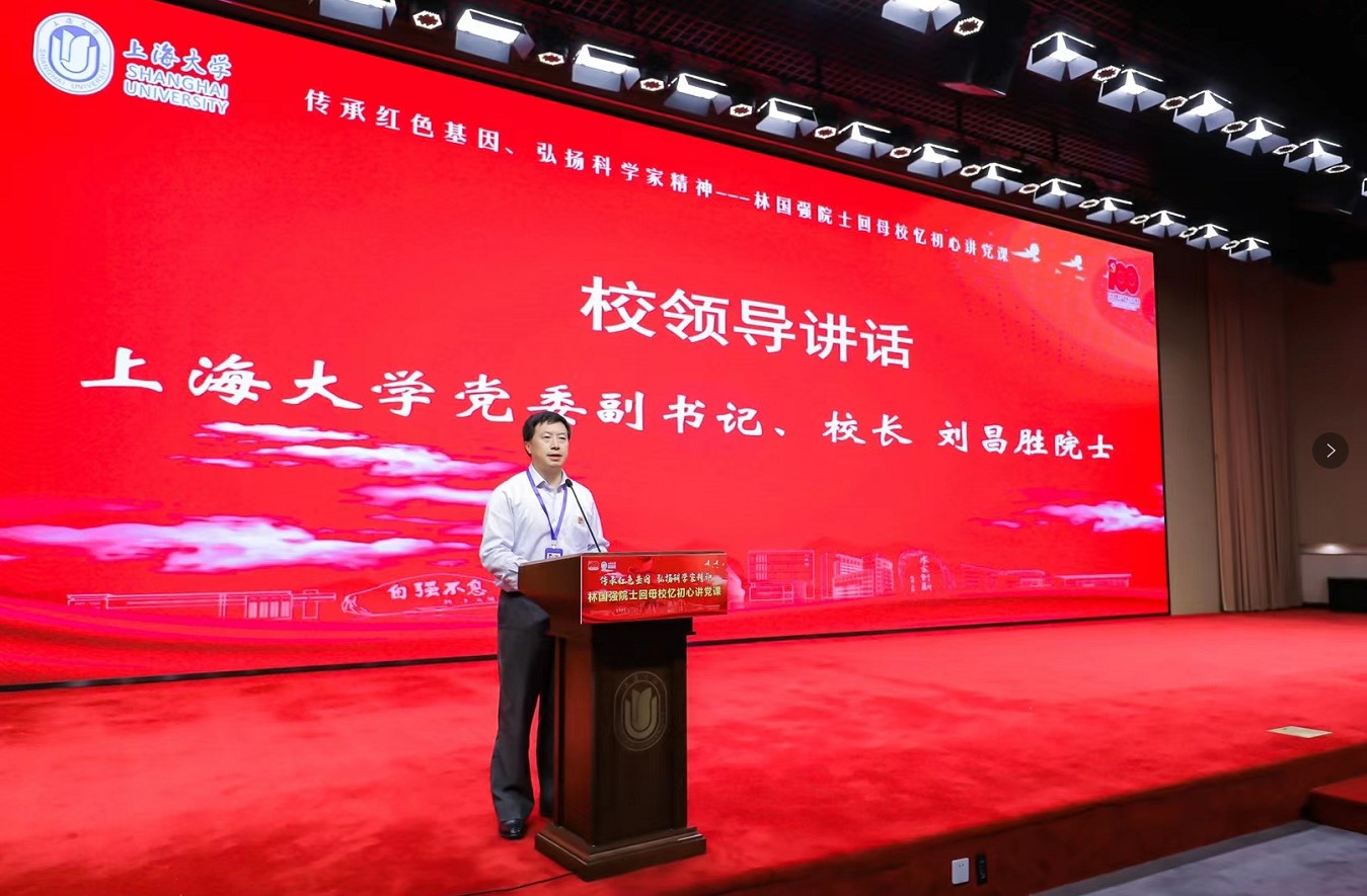 接着,刘昌胜校长讲话,他衷心感谢林院士多年以来对于母校的关心和帮助,希望广大师生认真听党课,学习科学家们追求真理、严谨治学、锐意创新的科研精神,奉献人民、服务社会的家国情怀,把红色基因代代传承,号召师生为了学校建设、社会进步、国家富强而不懈奋斗。