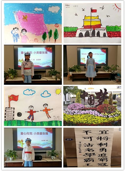 红色作品线上征集活动一经通知,就得到学院教职工子女的积极响应。小朋友们或以丰富的色彩,描绘出天安门的雄伟、党旗的鲜艳和生活的美好;或以虔诚的视角,把“中国梦”的美景拍摄入镜;或以遒劲的毛笔,追忆一代伟人“宜将剩勇追穷寇,不可沽名学霸王”的超凡气概,或以自己的敬佩,生动讲述出抗日小英雄小兵张嘎的故事,以及用英文,讲述改革开放后中国乡村的巨变……小朋友用不一样的形式,却以最真切的童心表达了自己独一无二的爱国爱党情怀。