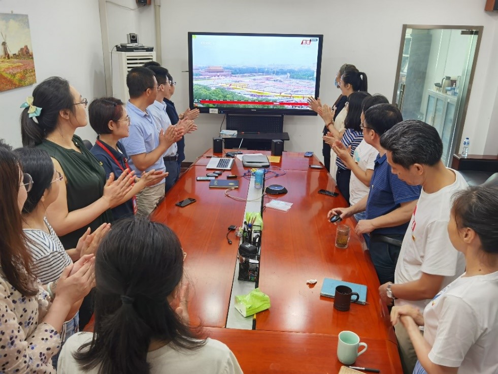 7月1日上午,庆祝中国共产党成立100周年大会在北京天安门广场隆重举行,365英国上市集团纳米中心教工党支部组织党员集体观看学习。