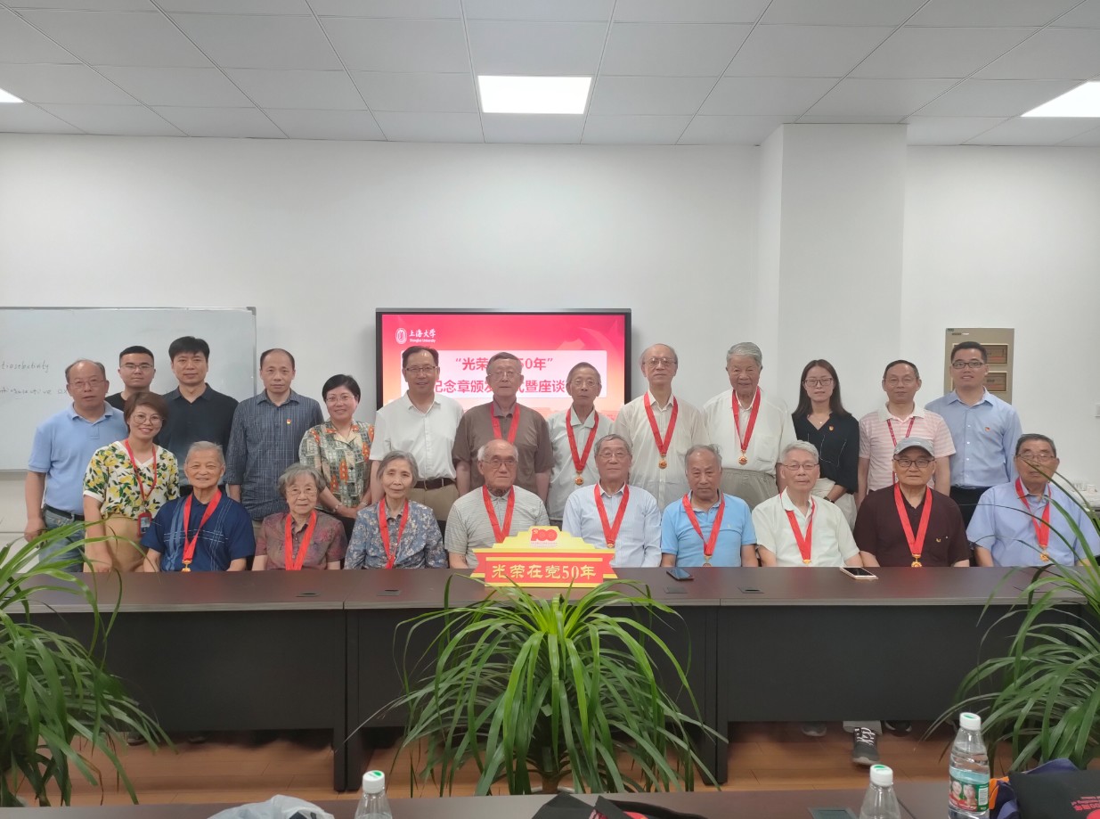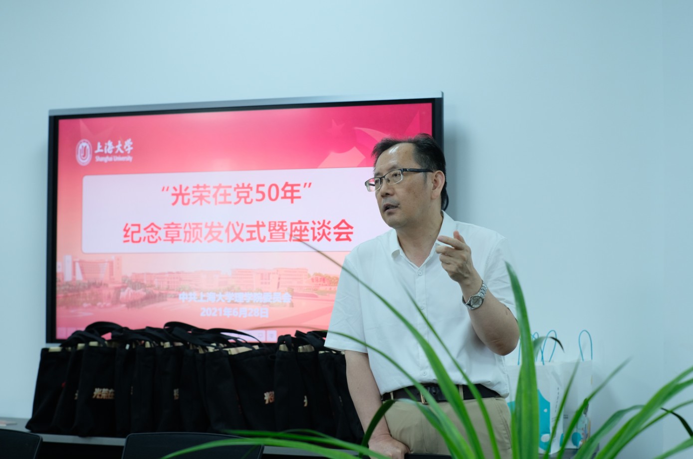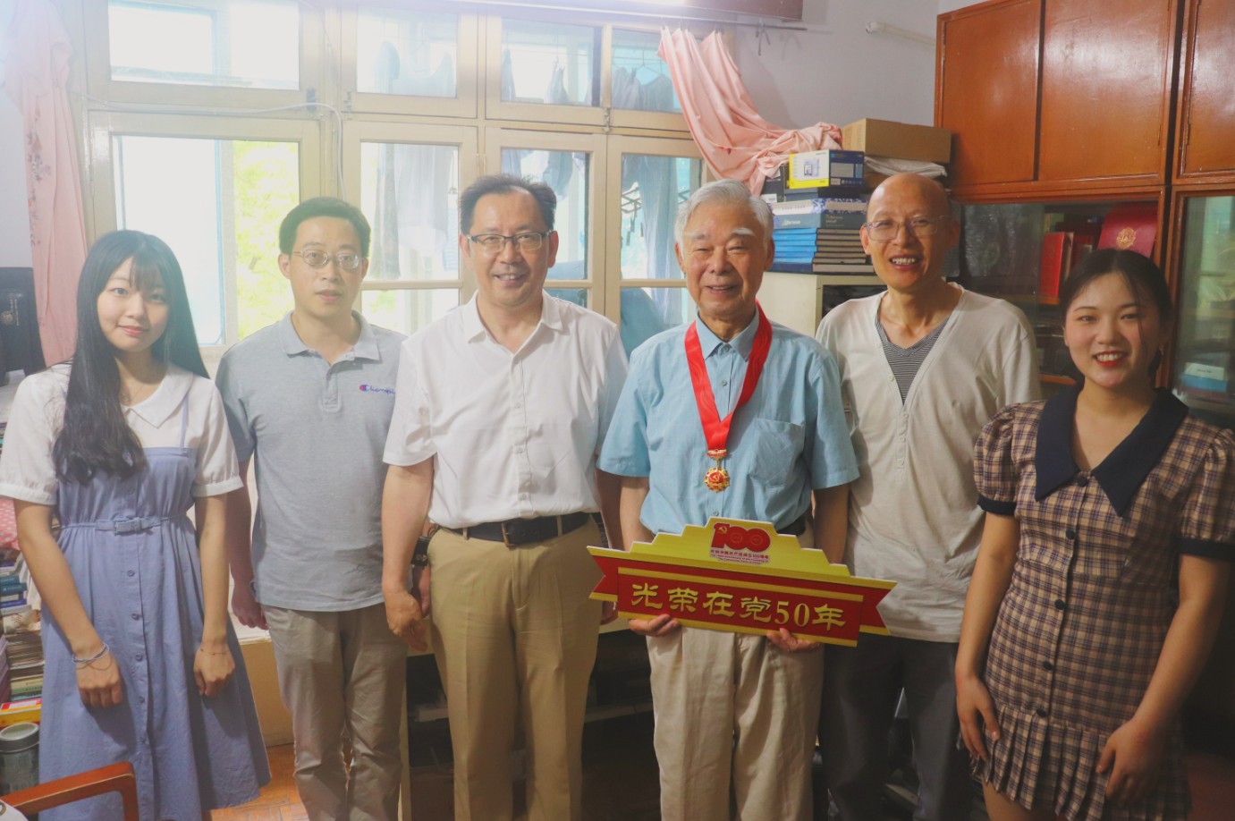 此外,在七一期间,盛万成书记以及三个学科总支书记带领系班子成员、教师党员代表、学生党员代表为行动不便的老同志共计12人上门颁发了纪念章。所有老同志将接受我们365英国上市集团研究生学子的采访,我们将在“上大理学党建”公众号陆续连载老党员教师的初心说,见证他们的光荣50年。相信他们的精神将激励新一代的理院人,不忘初心,肩负使命,继续为党和国家的事业奋斗拼搏!