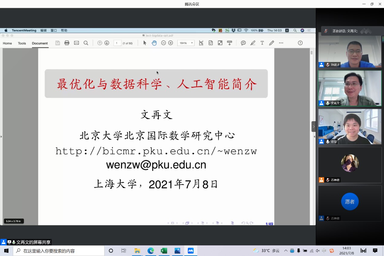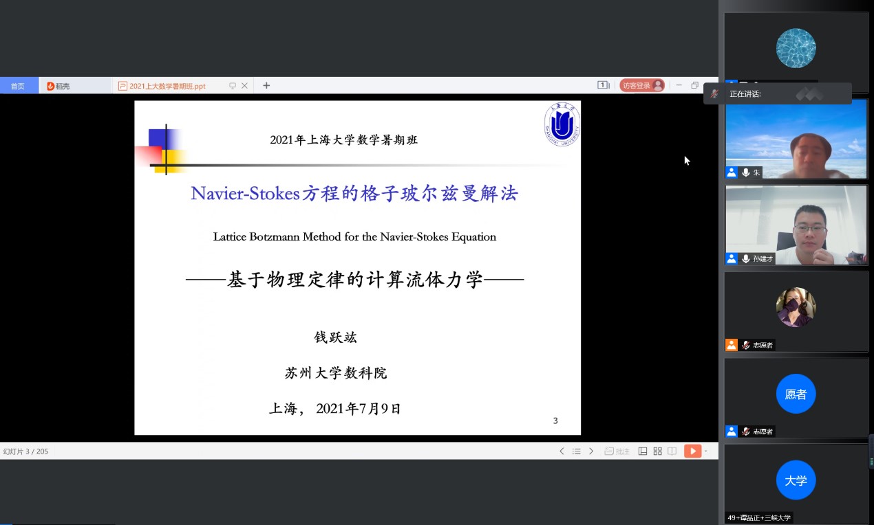 丁洋副教授介绍了基础数学专业,李新祥副教授介绍了计算数学专业,胡召平副教授介绍了应用数学专业,王文环副教授介绍了运筹学与控制论专业。硕士研究生代巧巧同学分享了推免经历,李海伶同学分享了推免和考研心得,孙建才副教授作了数学系研究生招生政策宣讲。参加线上夏令营的师生发言踊跃,交流思想,分享心得。