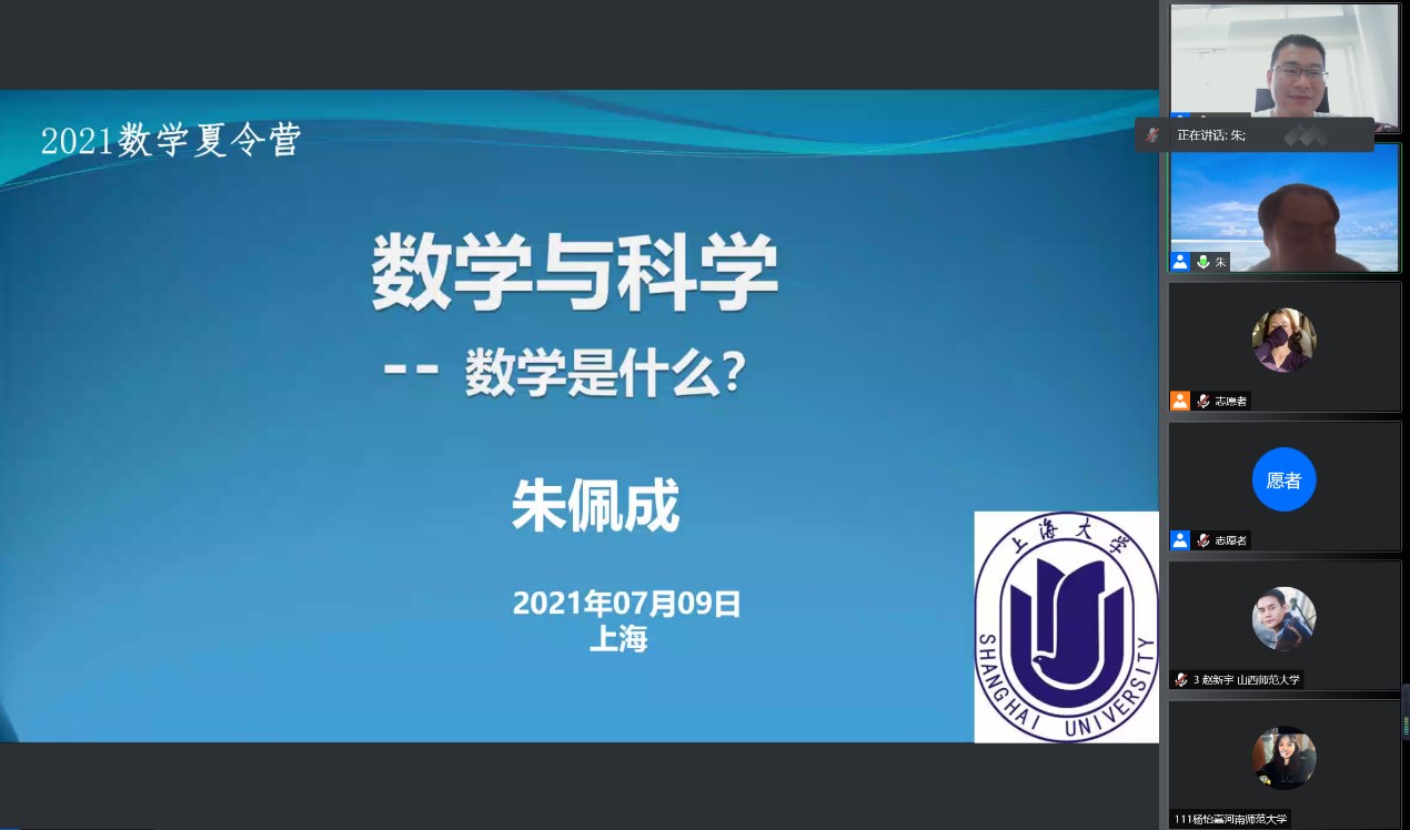 本次线上夏令营邀请4位校外专家做了精彩的学术报告。国家自然科学基金委优秀青年科学基金获得者、中组部青年拔尖人才计划入选者、北京大学北京国际数学研究中心文再文研究员,国家青年千人计划入选者、武汉大学数学与统计学院洪桂祥教授,教育部长江学者特聘教授、国家杰出青年基金获得者、新世纪百千万人才工程国家级入选者钱跃竑教授,国家杰出青年基金获得者、教育部新世纪优秀人才支持计划入选者、北京理工大学数学与统计学院胡峻教授等青年数学家作了精彩的报告。朱佩成教授为夏令营精心准备了“数学与科学”的报告。这些报告通俗易懂、深入浅出,既详细介绍专业方向,又充分反映学科前沿、交叉领域所取得的重要研究进展。