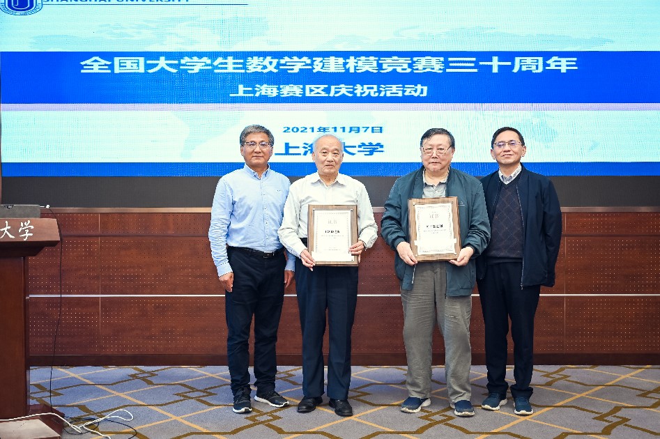 随后组委会代表全国组委会对两位上海市数模竞赛元老丁颂康、桂子鹏颁发了卓越贡献奖。
