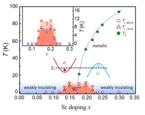 图1.无限层镍基超导Nd1-xSrxNi02量子电子态相图[Physical Review Letters 125, 147003 (2020)]。