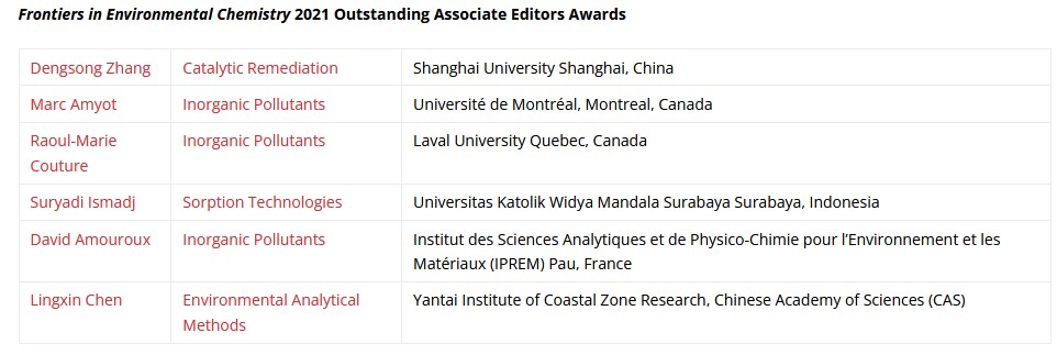 Frontier出版社官方公告:https://blog.frontiersin.org/2022/03/28/frontiers-in-environmental-chemistry-2021-editor-awards/