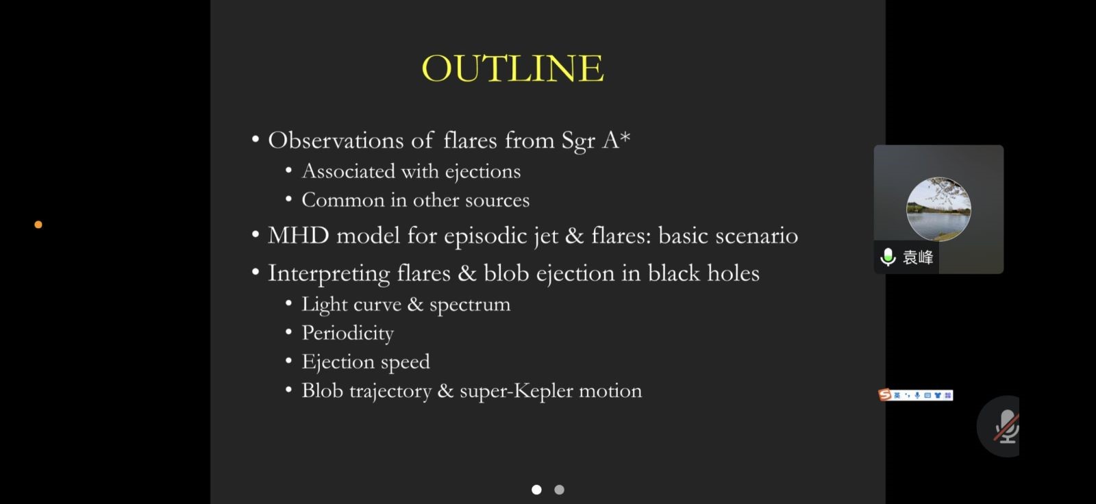 袁峰研究员从由他参与的事件,视界望远镜项目(EHT)拍摄到的首张银河系中心超大质量黑洞“人马座A*”的第一张写真照片——一个巨大的宇宙“甜甜圈”谈起,介绍了黑洞的吸积盘、吸积与喷流过程和银河系中心超大质量黑洞吸积盘闪耀问题。重点讲解了通过磁流体动力学在弯曲时空中的磁场磁重联现象解释黑洞吸积盘的周期性闪耀与物质分布问题,以及对于黑洞周围发光物质的磁流体动力学的数值模拟计算。